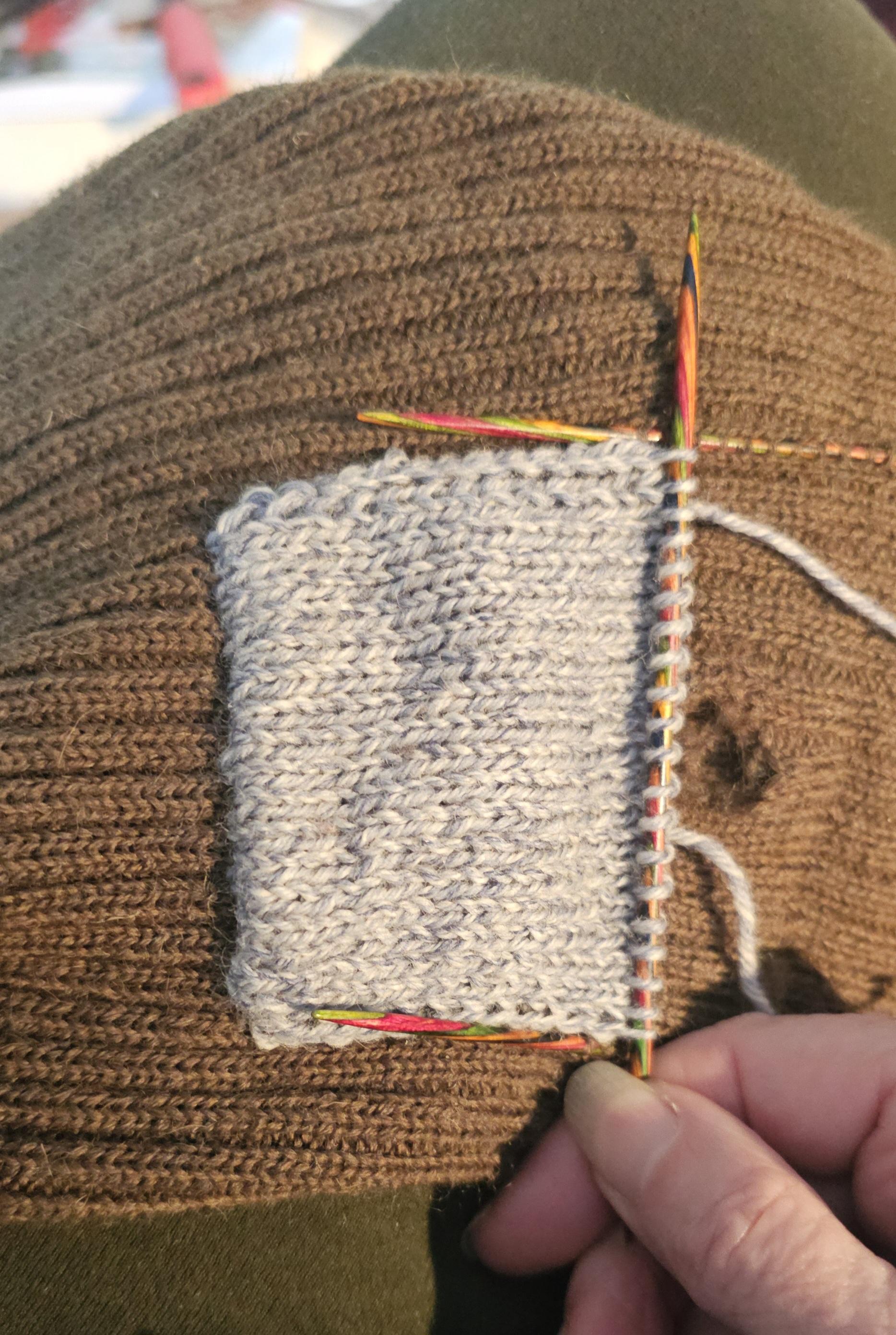 Over knitting is the way to go, and I'm all ready! I did change the yarn to something a bit thinner. It's now self striping sick yarn