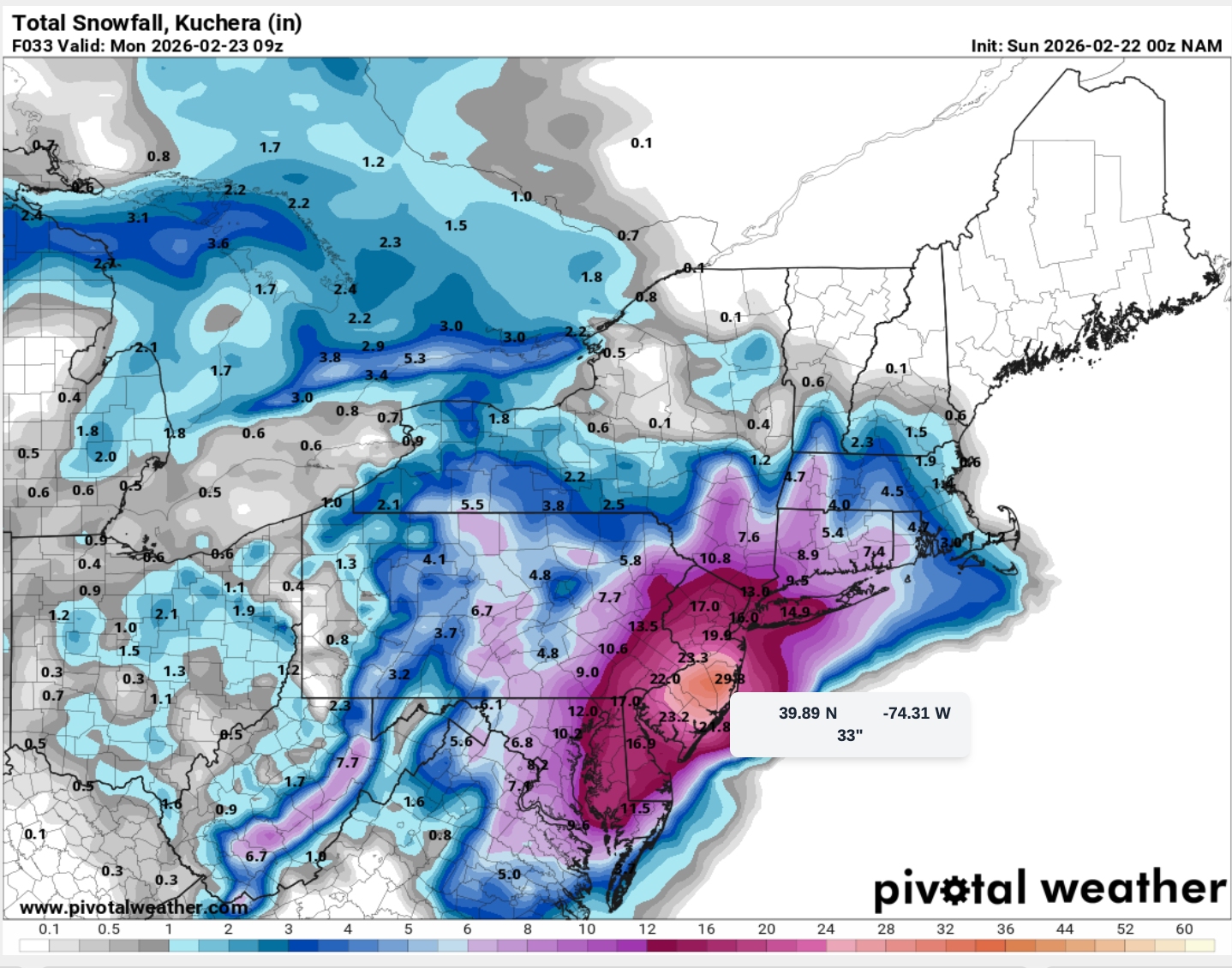 The 00z NAM IS FUCKING INSANE. It is already showing multiple 30"+ spots near the Jersey Shore and the storm still looks like this! A lot more snow is incoming. Holy fucking shit!