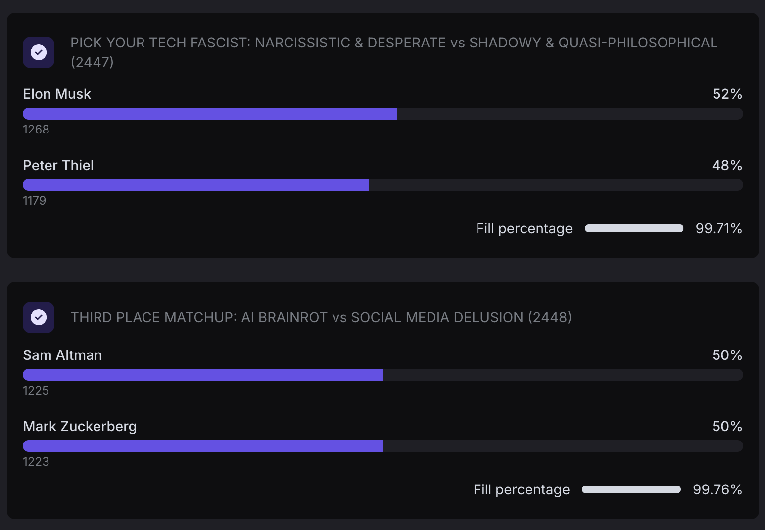 Sam Altman takes the bronze, pushing aside Mark Zuckerberg by a mere two-vote margin!