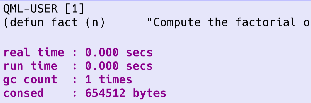 CL-USER[10]: (time (fact 10000))