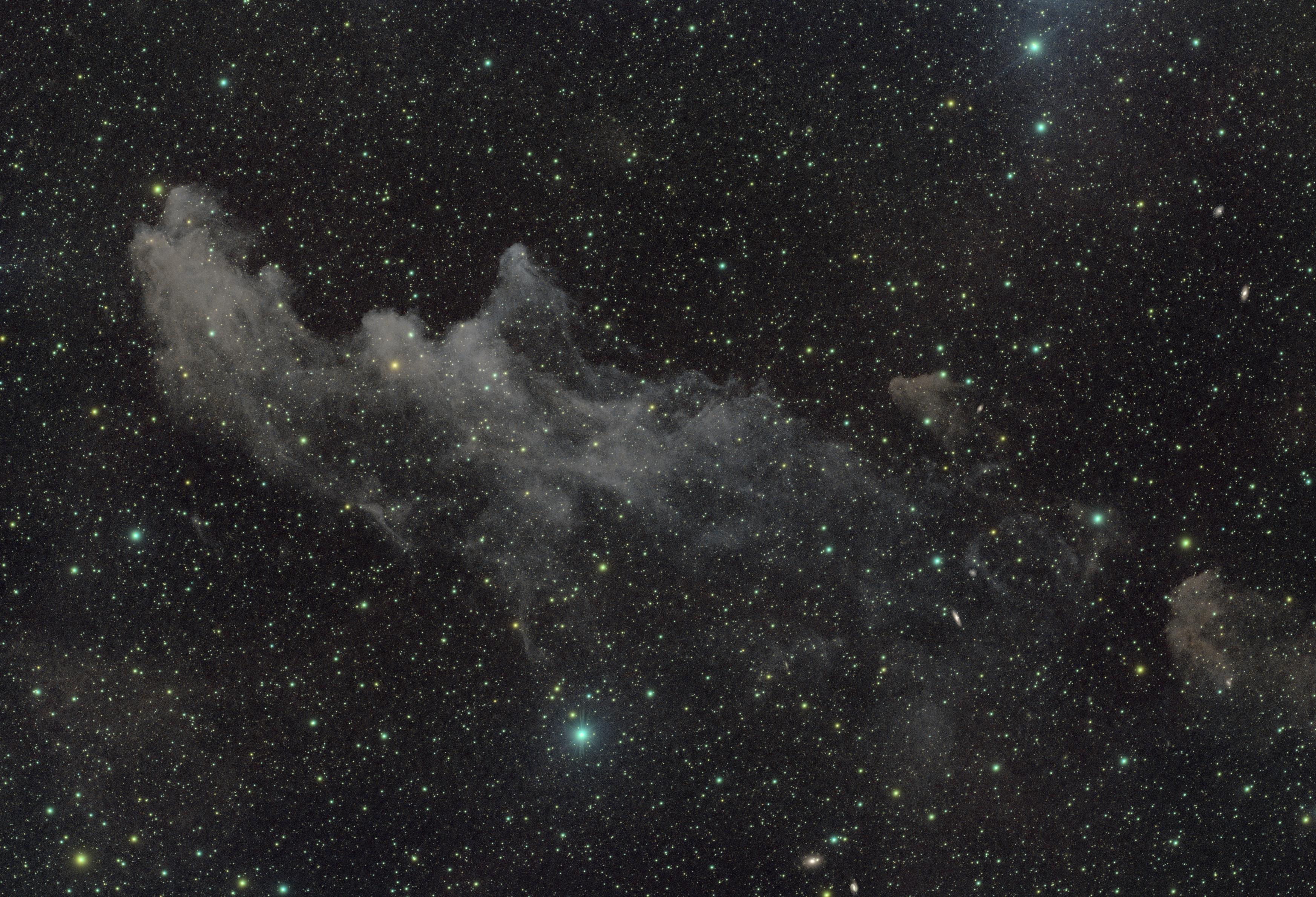 Being a reflection nebula, this thing doesn’t glow in pink or blue like emission nebulae do. All you’re seeing is star light bouncing off “dust”. Which is this case is more