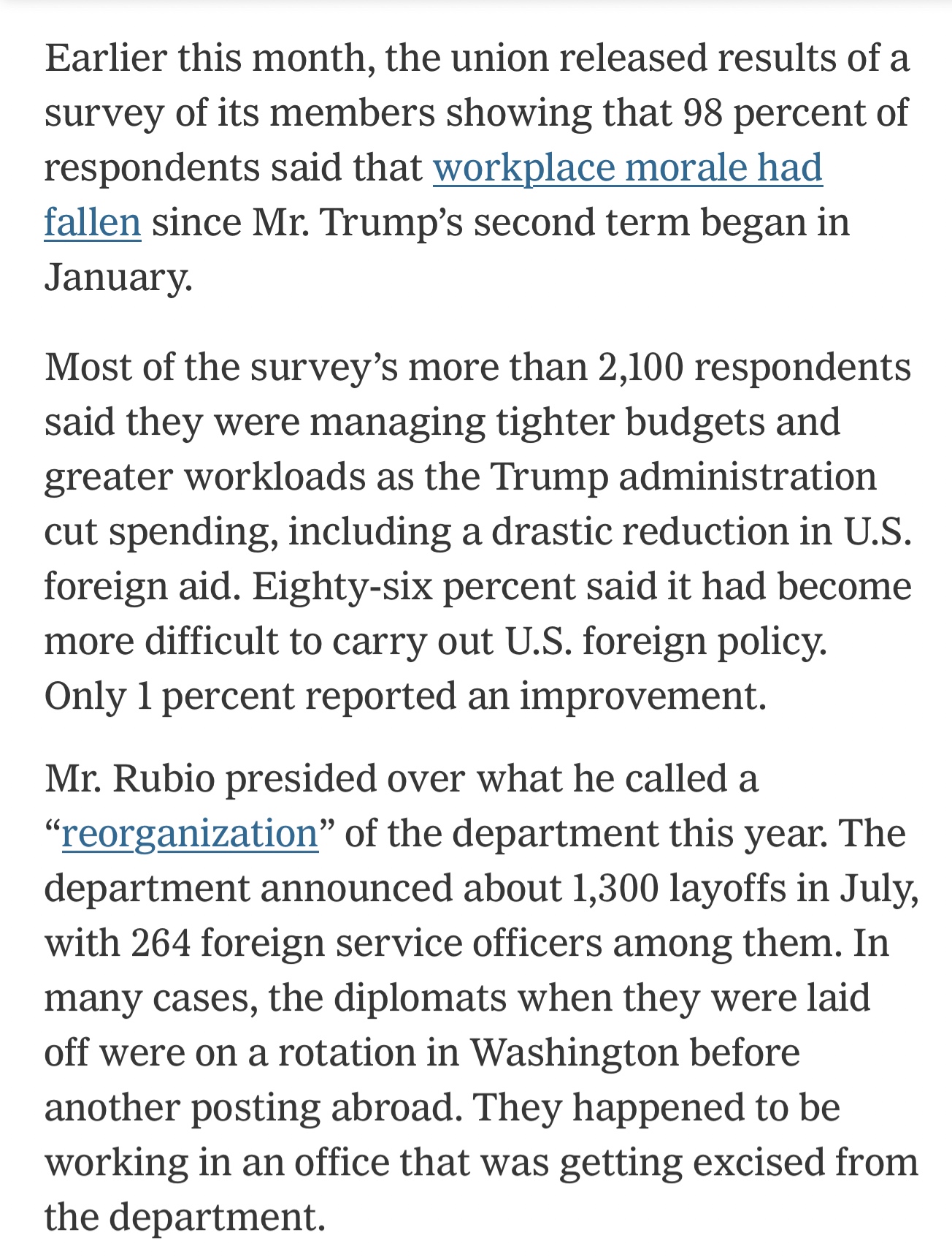 Nine out of ten diplomats serving the United States say Trump’s approach is failing America. If any CEO was undermining his organization in the same way he would be fired