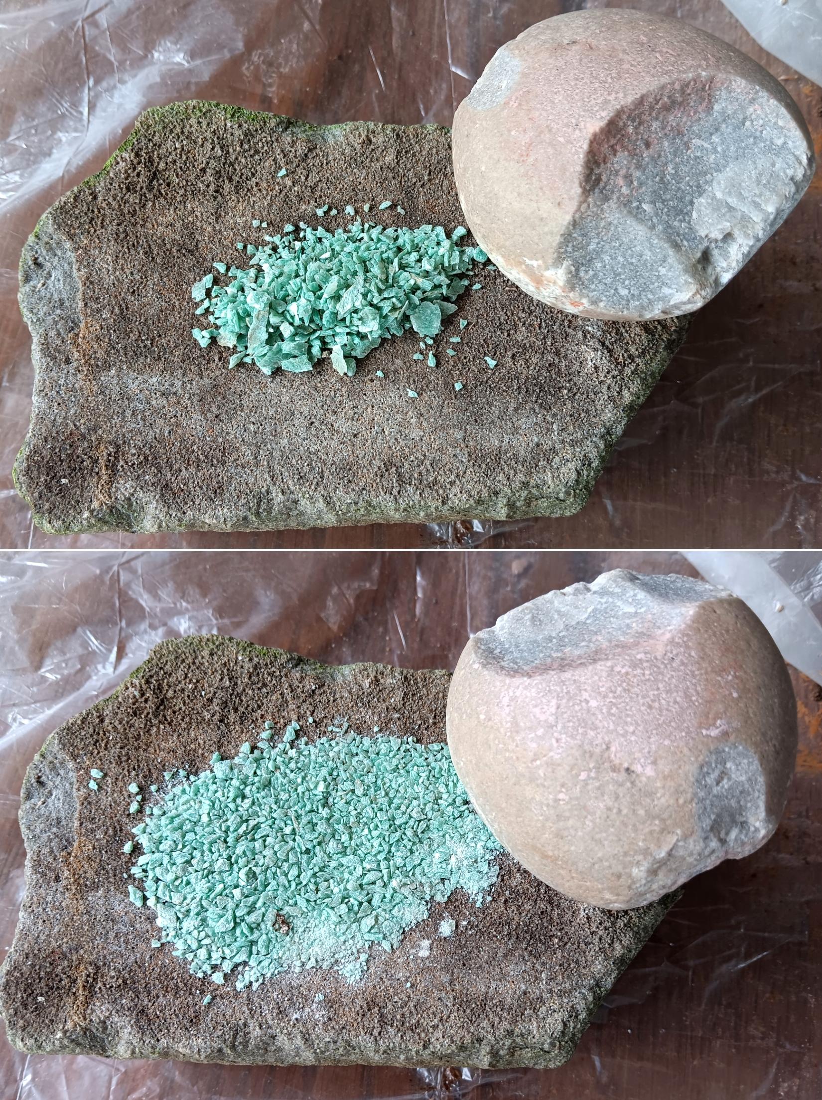 Crushed aventurine rock for special ceramic temper project. #ceramics #archaeology