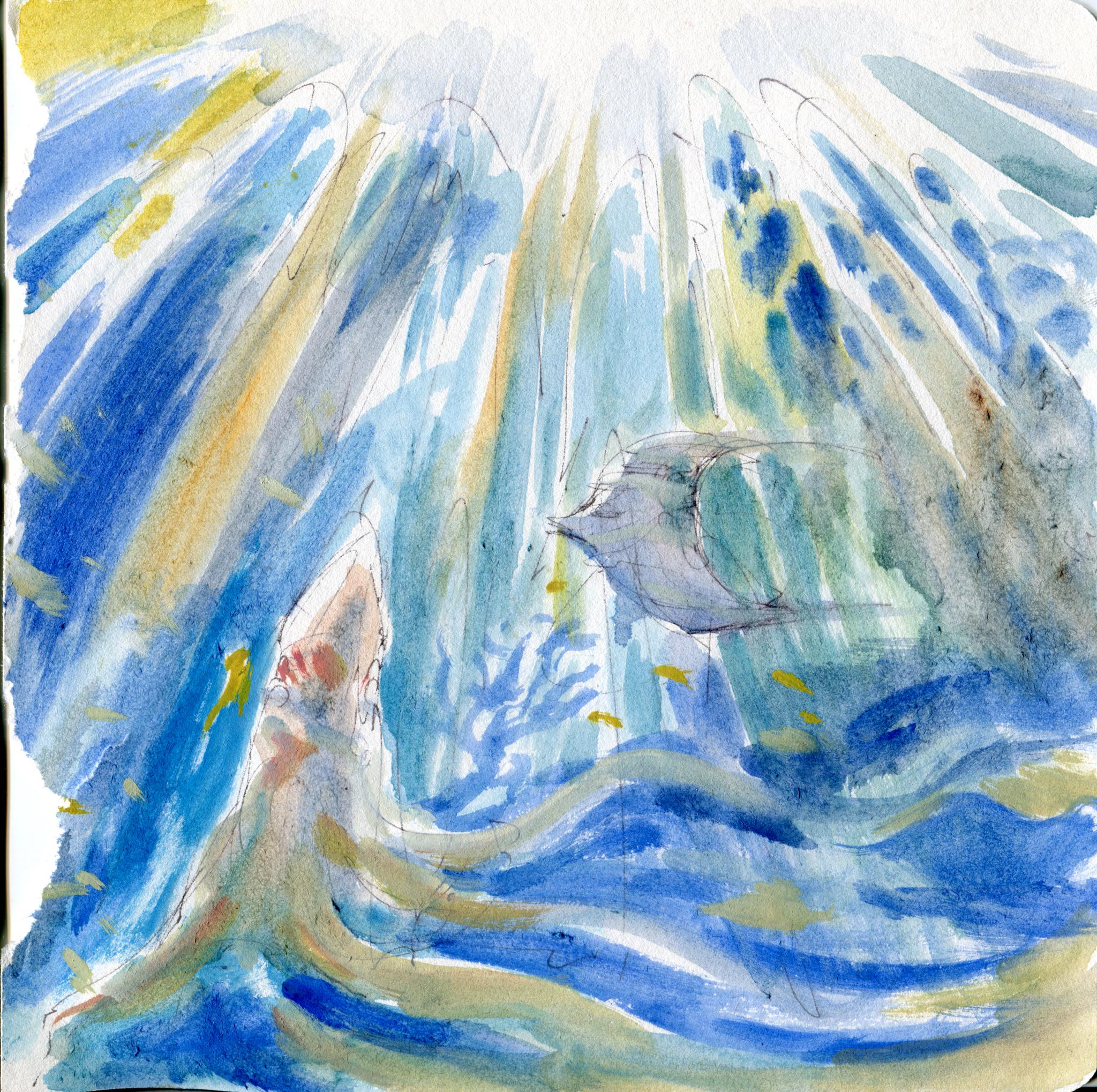 Inspired by freediving in baie de Jinek, Kanaky Nouvelle-Caledonie 2004.