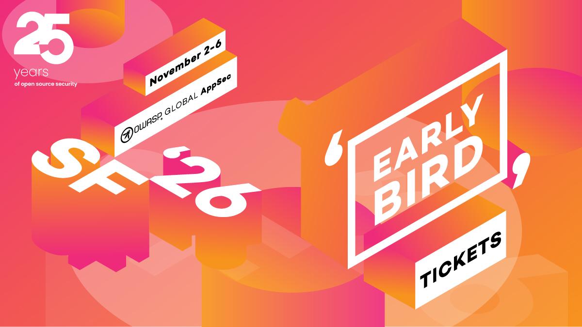 Early bird pricing is OPEN for Global AppSec USA, coming to San Francisco this November!