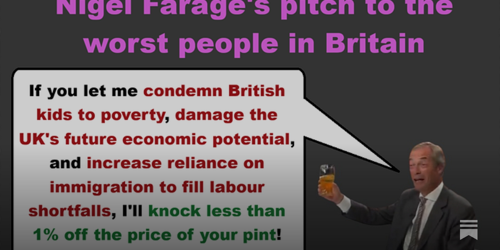 “Nigel Farage says that he wants to cut the price of a pint by 5p, and pay for it by re-imposing economic sanctions on British children for the "crime" of having more than one sibling”