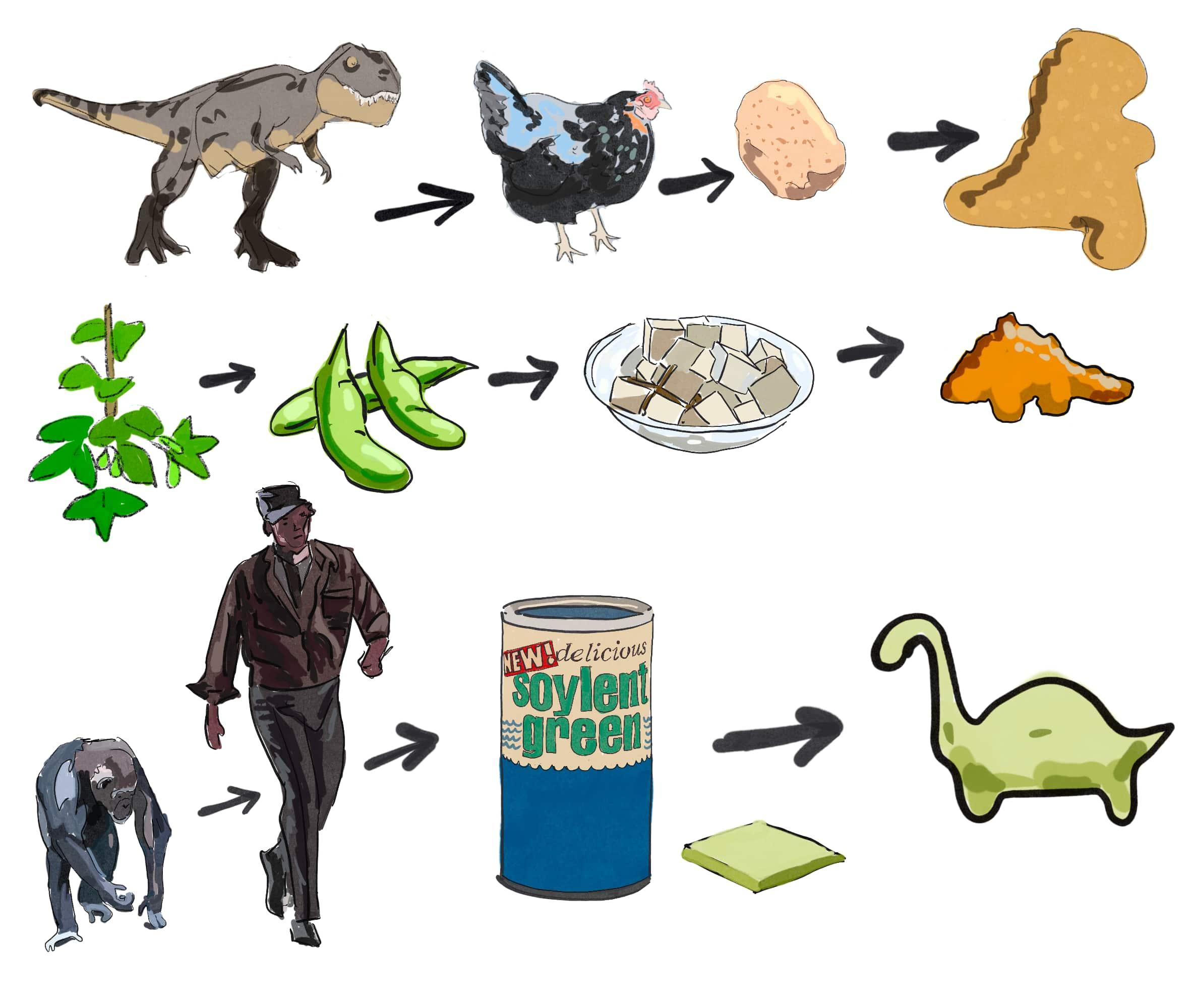 alt Evolutions of chicken nuggets, plant nuggets, and soylent green nuggets. Evolutions of chicken nuggets, plant nuggets, and soylent green nuggets.