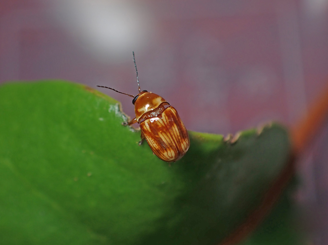 Cryptocephalus tsutsumiuchii, an adult feeding on the leaf.