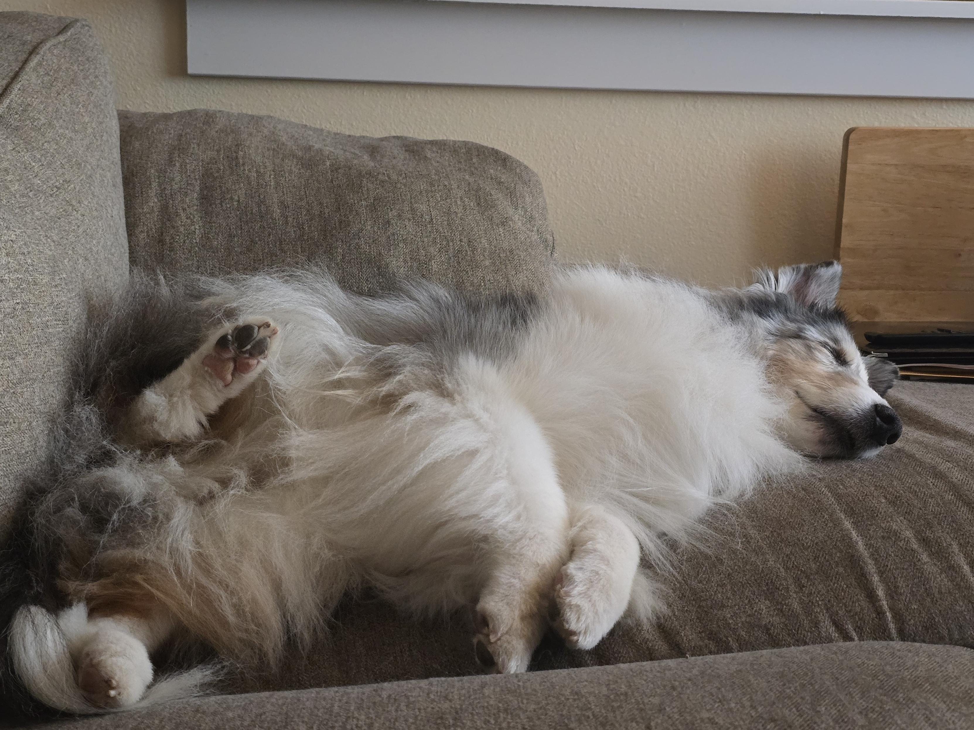 I have no idea why he sometimes sleeps with one foot in the air and he only does this on the couch. But 10/10 when he does it. Indy is fully displaying the Hawaiian concept of ho'omaha here.