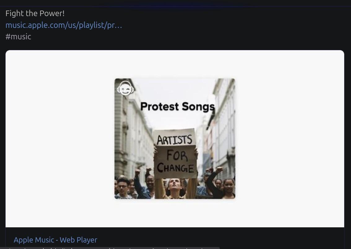 Posted by an Apple user just now. Not sure if it is a user created playlist or official but let me just say, FUCK YOU APPLE. You can stick your attempt at profit by marketing protest songs straight up TIM COOK'S ASS.