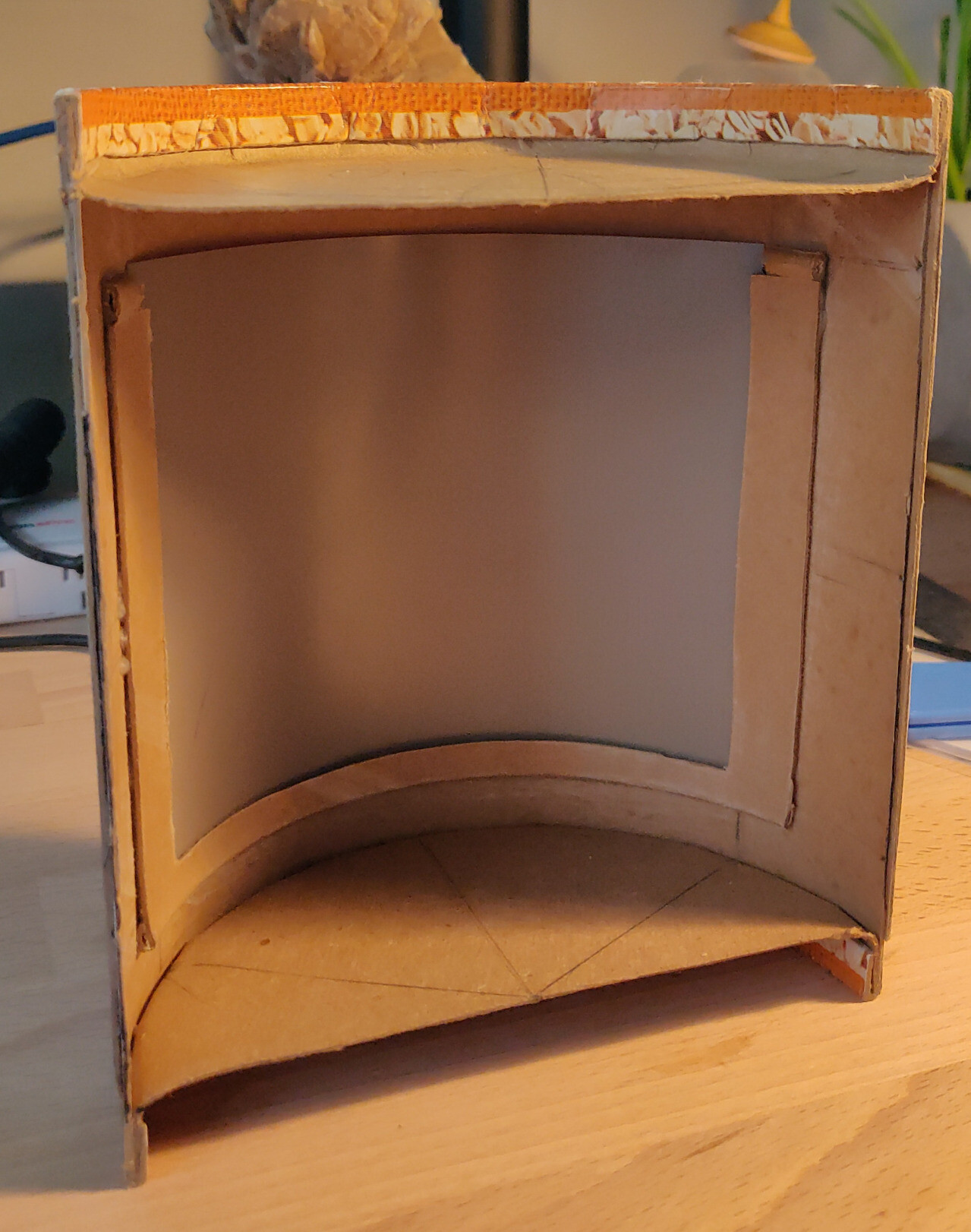 I wanted to try and position the pinhole at the focal point of the circular arc formed by a curved film plane. In that way, focal length will remain the same across the sheet of film; widening the angle of view and reducing vignetting.