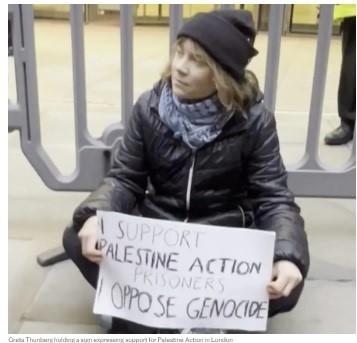 #GretaThunberg arrested in London over ‘ #PalestineAction prisoners’ placard - https://www.theguardian.com/uk-news/2025/dec/23/greta-thunberg-arrested-london-palestine-action-prisoners-placard "she sat down with a sign saying “I support the Palestine Action prisoners. I oppose genocide.”