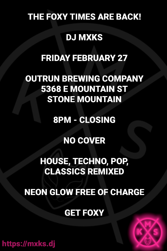 The foxy times are back, #Atlanta friends! Come on down to Outrun Brewing Co (https://outrunbrewingco.com) Friday, 2/27, for some real live fun beats mixed by a fox (okay...a human with a fox obsession, but at least I'm not an algorithm). No cover, delicious drinks, and a beautiful venue. Spring's in the air, so let's dance and get foxy! #dj #edm