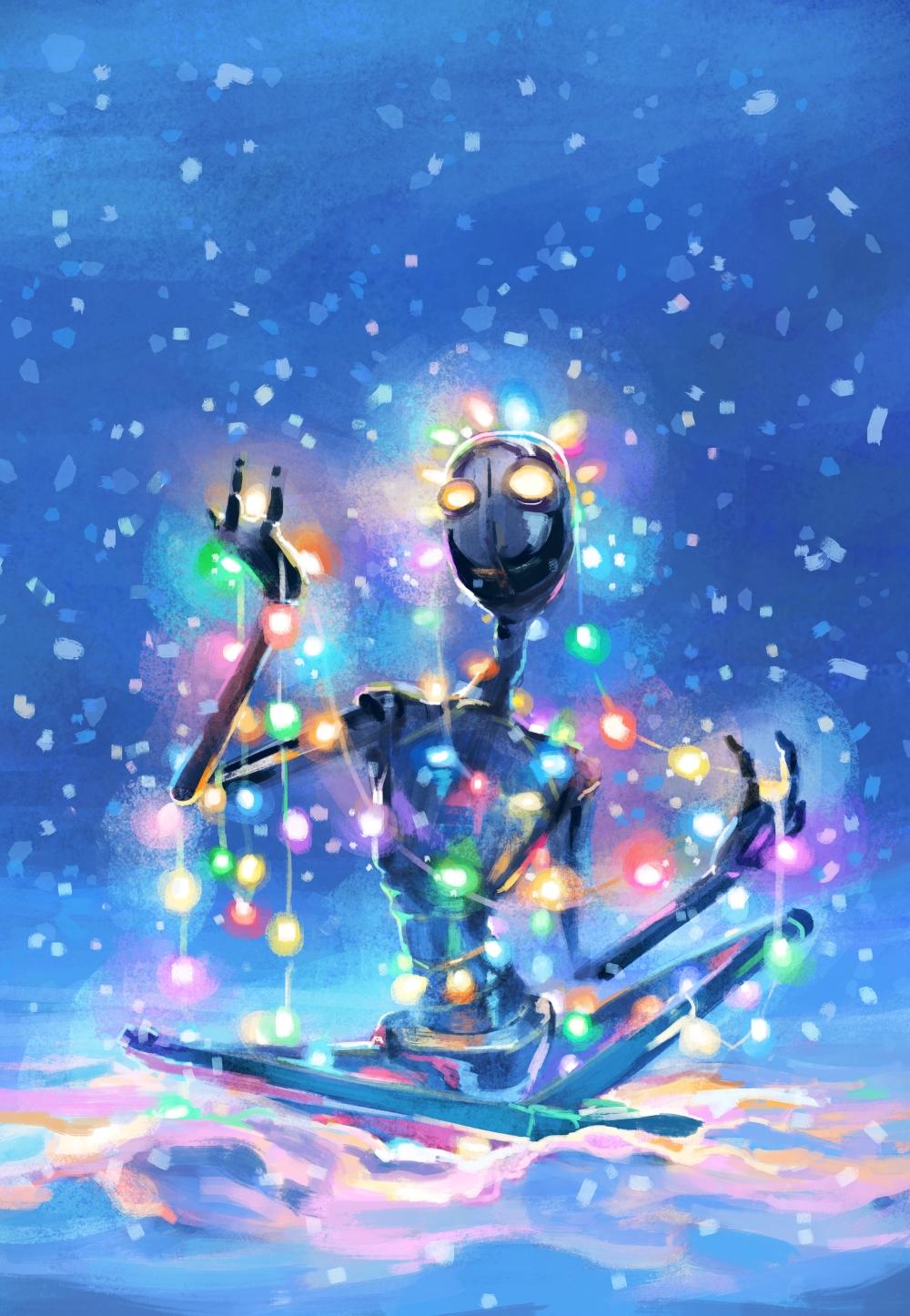 I planned to make this into a card back in 2023 but never got to it. Just your regular Christmas robot.