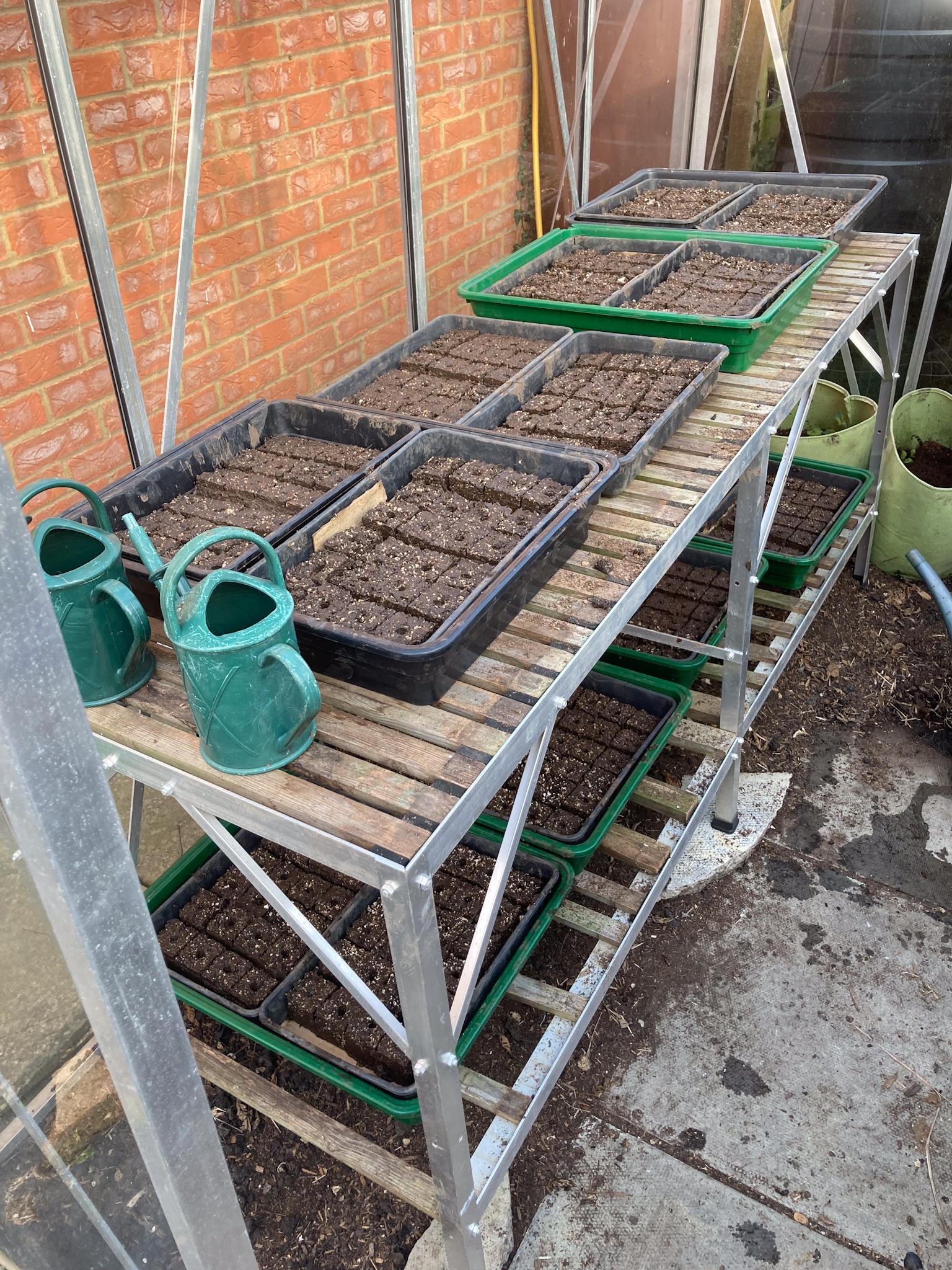 The soil blocks are ready for sowing into. I added a little leaf mould, vermiculite, horse manure and perlite to the home made compost for the soil block mix.