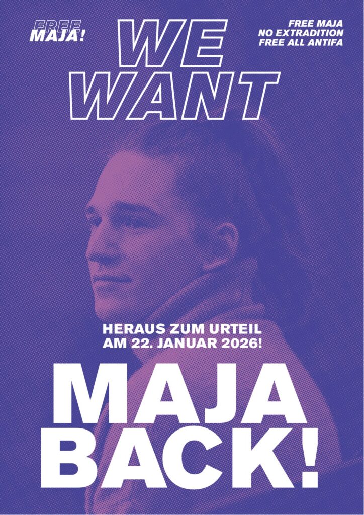 'Am 22. Januar 2026 wird in Budapest das Urteil im Prozess gegen die angeklagten Antifaschist*innen erwartet. Eine Woche zuvor, am 15. Januar 2026, rufen wir zu bundesweiten und europaweiten Aktionen vor ungarischen Botschaften und Konsulaten auf.