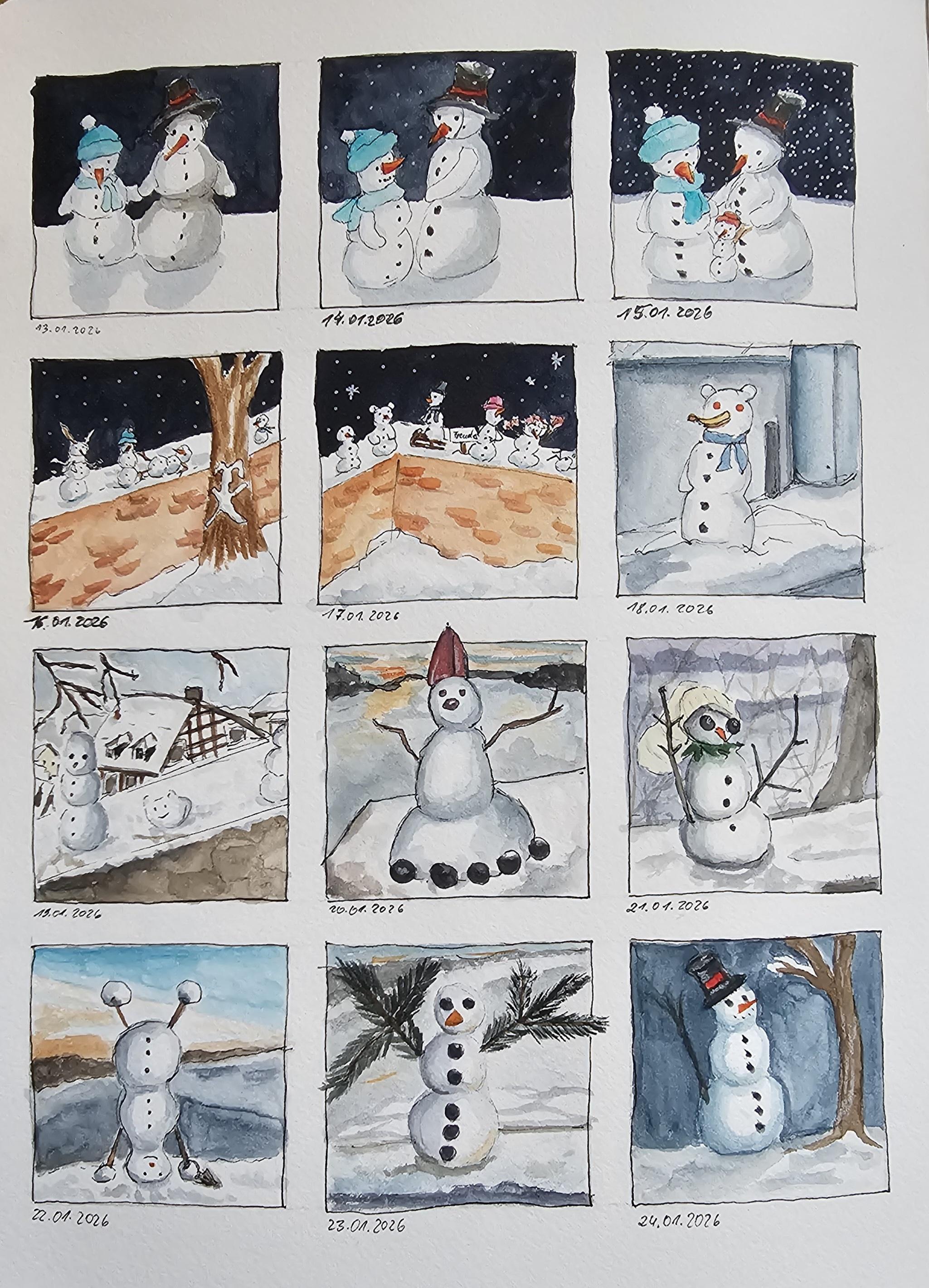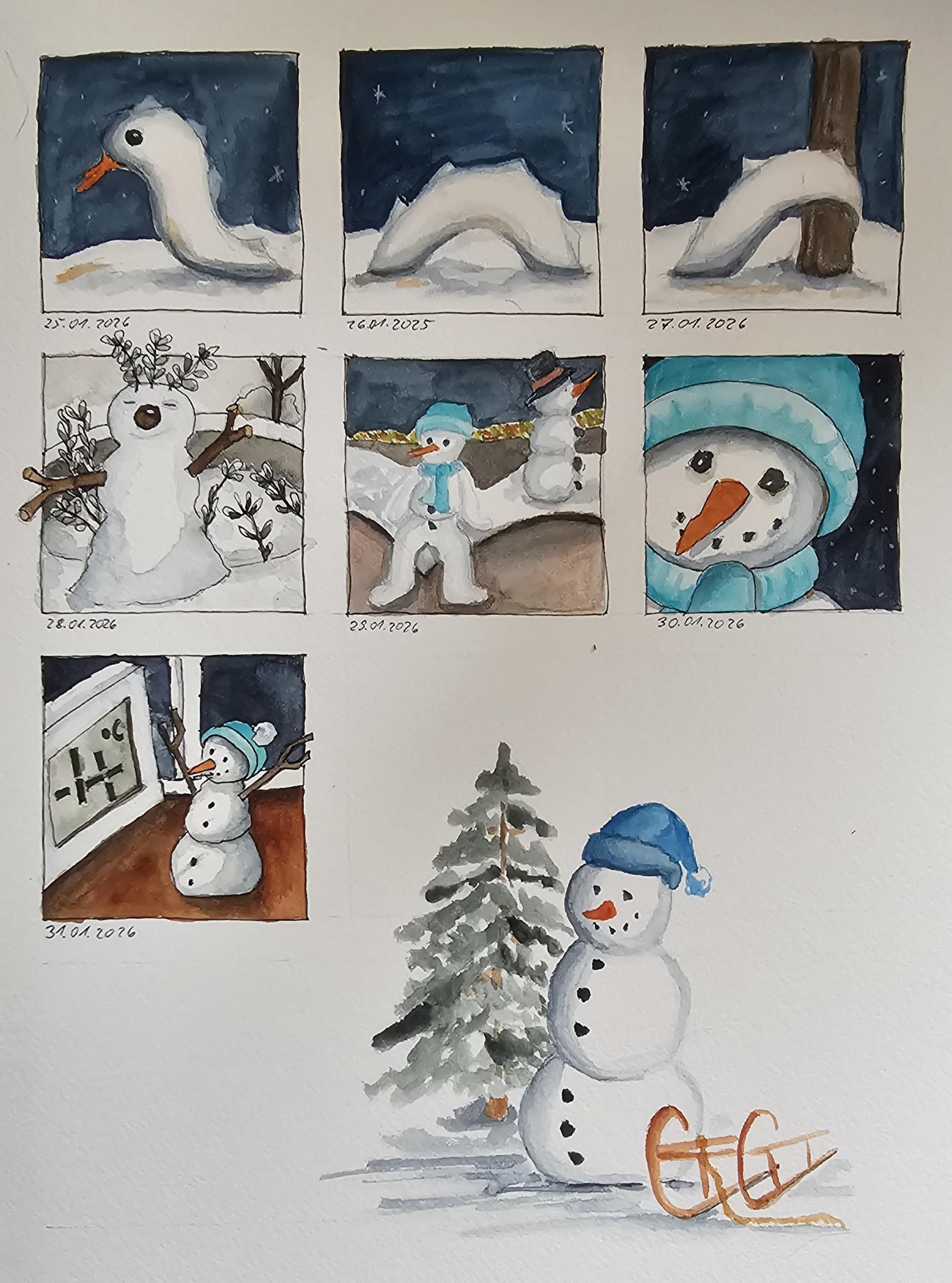 #watercoloryourday365 - 31 kleine Motive für den #Schneemann -Januar