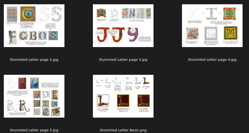 A 5-page PDF that guides you through how to draw illuminated letters. There are 11 letter examples broken down, and lots more examples of finished letters I've made for inspiration, as well as tips on how to find and incorporate patterns and ideas into your letters.