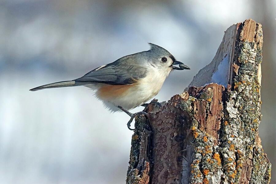 Every winter I make the drive to where I know there are a few of the super cute Tufted Titmouse. Someone had put out a few seeds and nuts for the winter birds and this little one grabbed a Sunflower seed. Click link to view!
