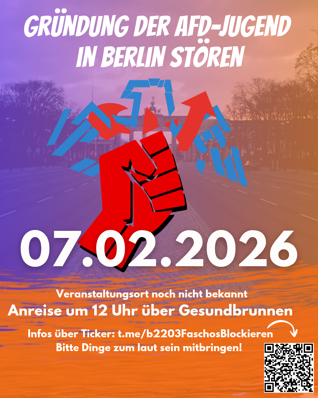 Aufruf zur Demo gegen die Gründung der AfD- Jugend in Berlin. Es rufen unter anderem die #omasgegenrechts #aufstehengegenrassismus #handinhand und #dielinke auf. #afdverbotJETZT #niewiederistjetzt #Demokratieverteidigen