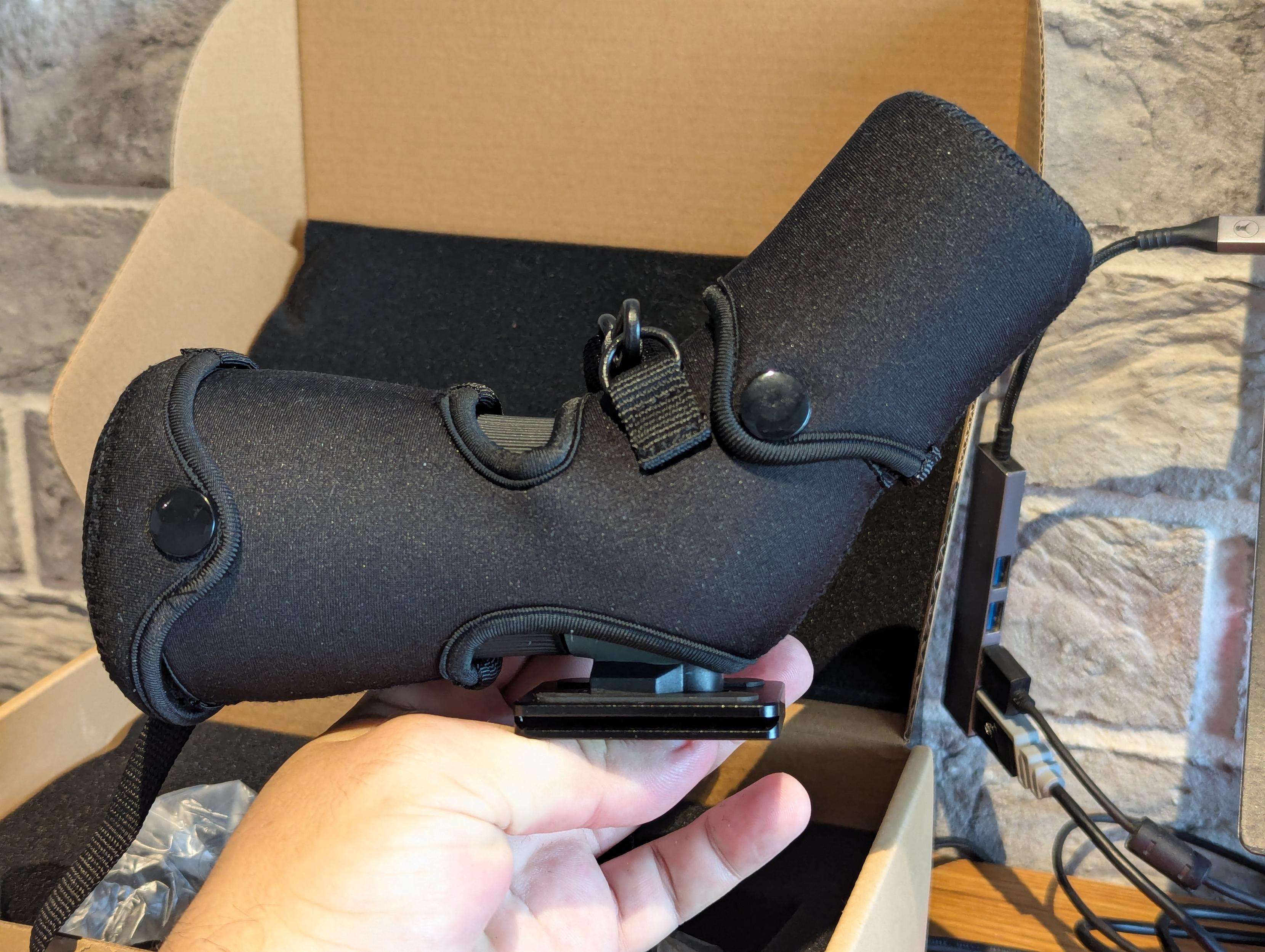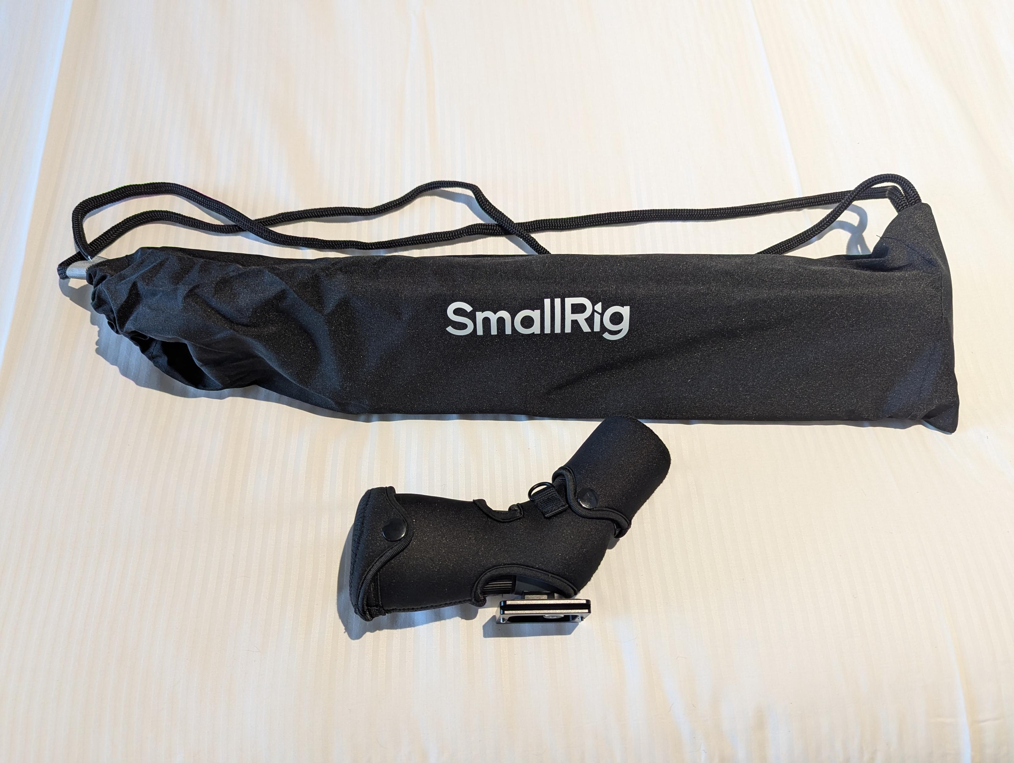 I finally got my hands on the spotting scope I ordered, an Svbony SV410 9-27x56 ED. This is mainly for archery, so that I can see where my arrows have hit. Together with the SmallRig Travel Video Tripod it makes for a very portable setup that should be easy to carry in my archery backpack when cycling to the range.