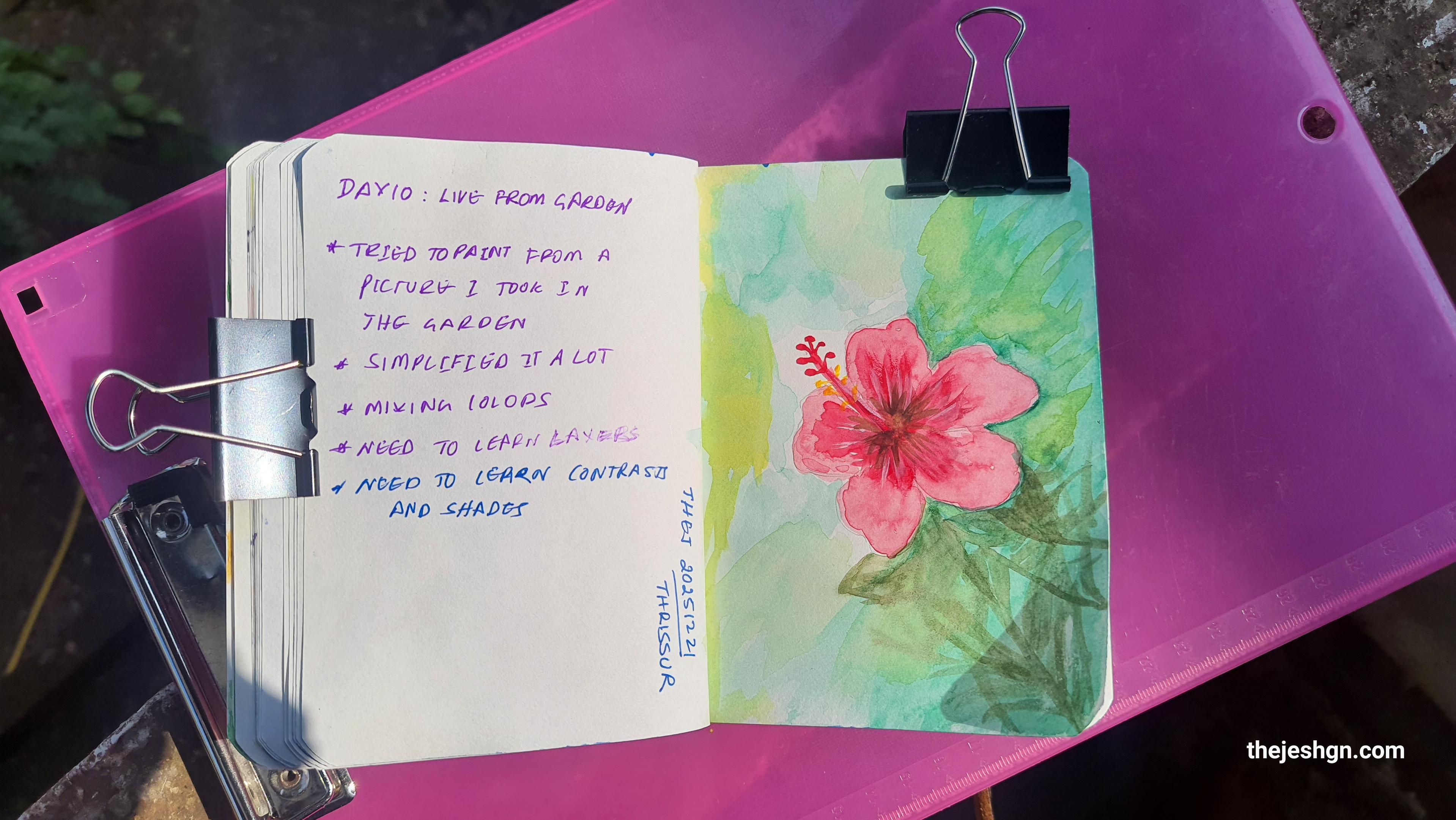 Day 10: Live from garden. Pseudo live, took a picture and then painted it. Need to learn more about layers, contrast and shades. 20251221