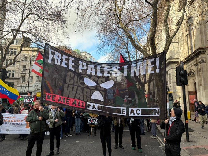 The two people carrying this banner were arrested in London on the Palestine march yesterday, purely for carrying it.