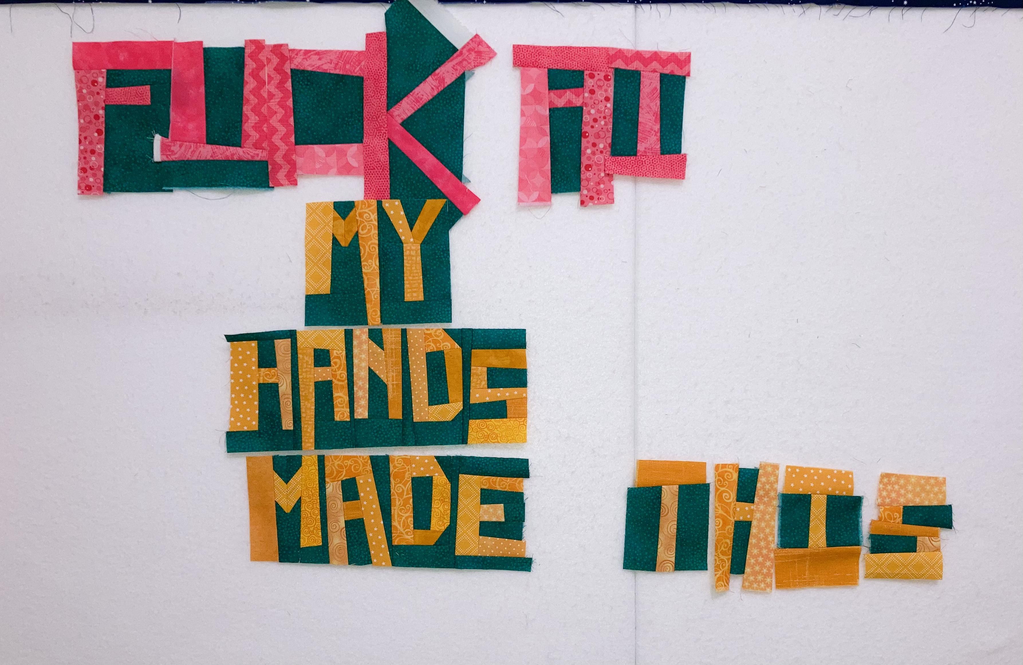 I finished my quilt! It took over six months and is entirely hand sewn from scraps and remnants. The backing is a pale blue duvet cover (I think, it was a weird bit of thrift store fabric) and the 'batting' is an old, stained cotton sofa covering. I embroidered it with a crocheted doily from the thrift store.