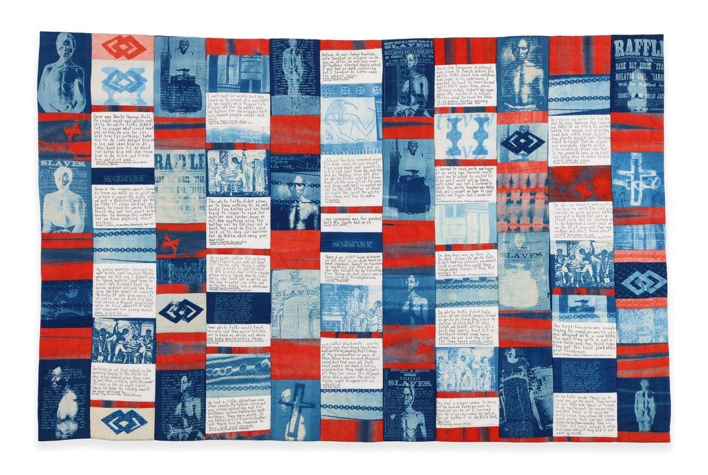 From the artist’s Instagram: “After the Civil War, freed slaves placed wanted information ads in newspapers to find family members separated by slavery. The ads verify the persistent efforts made to reunite with love ones. Through my quilts, my ancestors beckon me to find family members separated as early as the 1700s and to call them by their names.