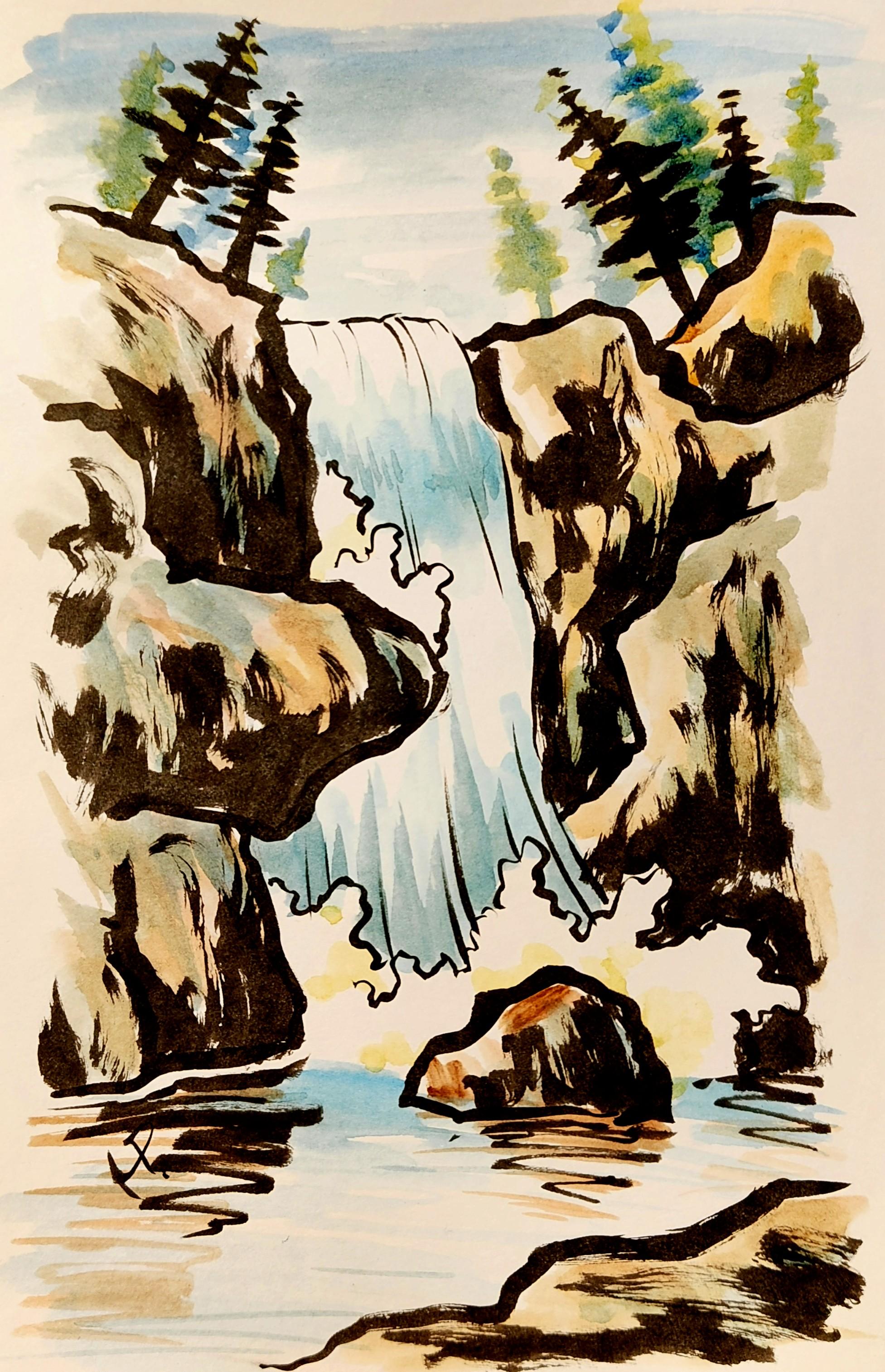 A little sumi-e waterfall. Ink and watercolour.