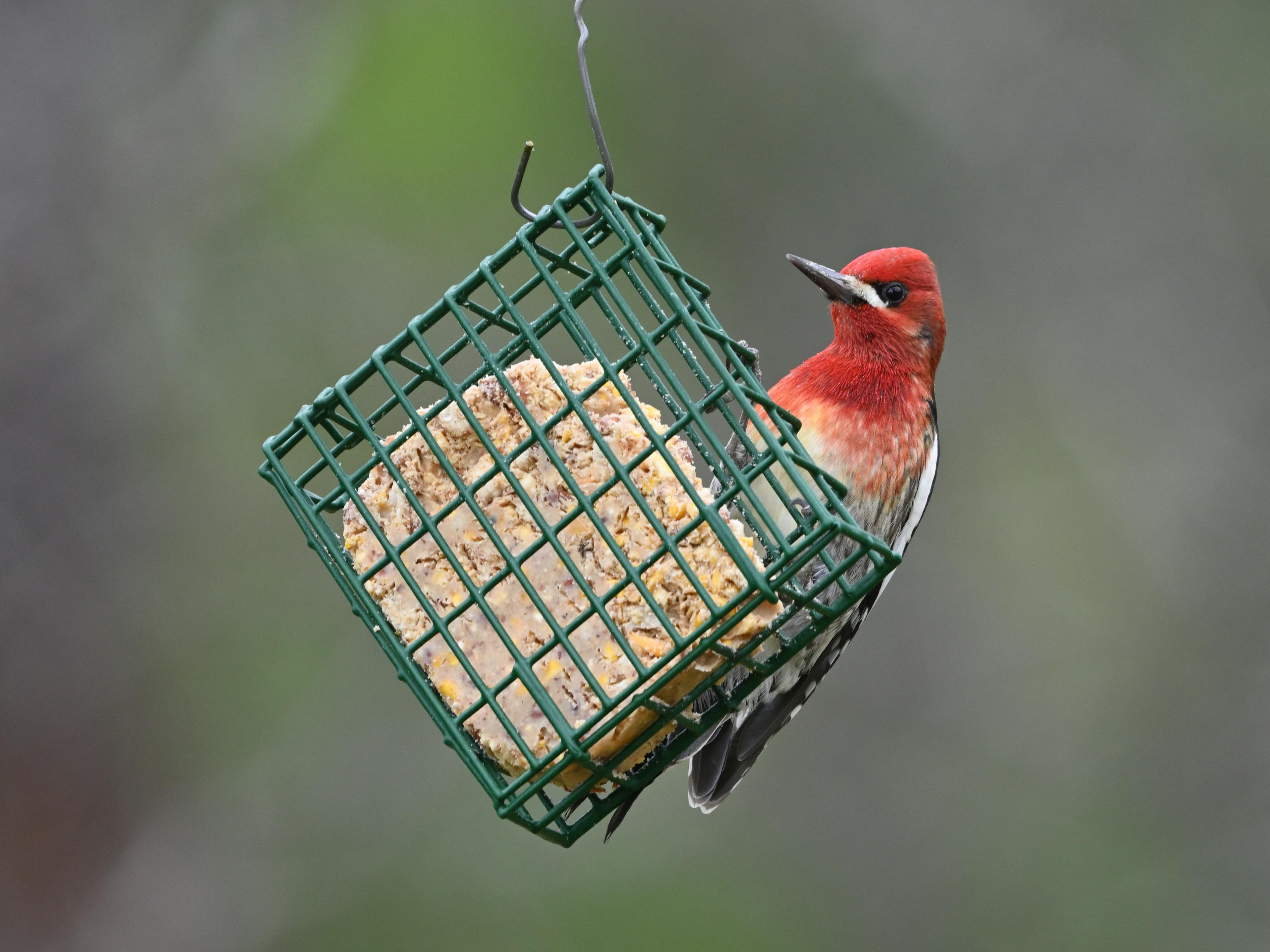 A mild Friday in the yard, a Red-breasted Sapsucker took a break from the sap wells and visited the suet feeder.