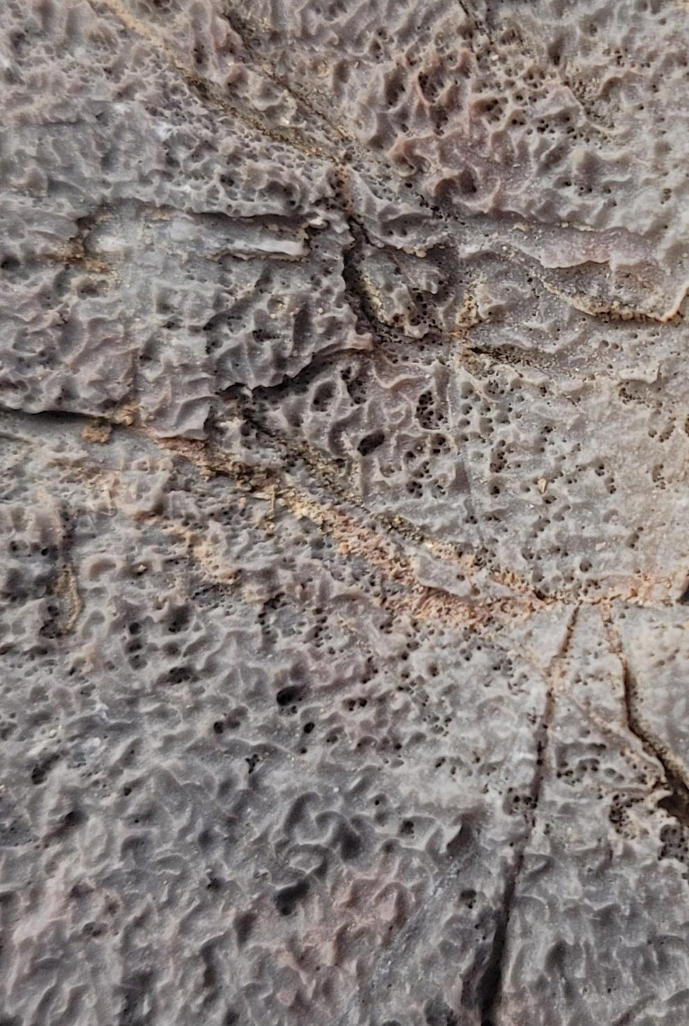 Actually, this is a close-up of a rock with an excellent example of pitted microkarren. This entire scene is only about an inch across.