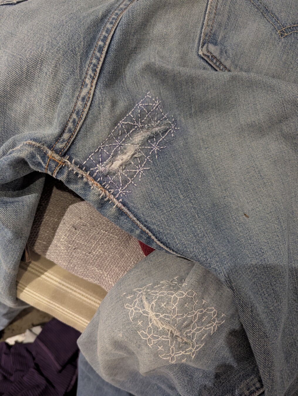 Some new #sashiko on my trousers. The water-erasable ink has almost gone π