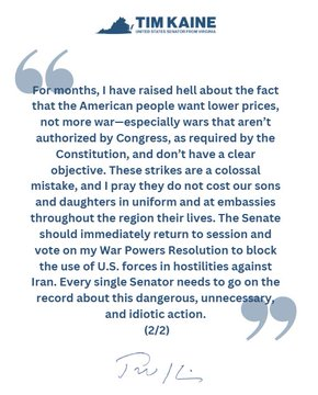 My statement regarding President Trump’s🚨ILLEGAL WAR WITH IRAN:"