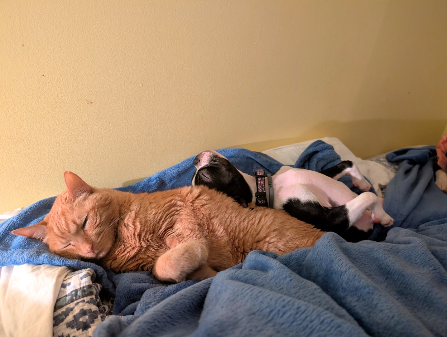 #nap #cat #puppy #dog #BostonTerrier #CatFriend #BrendaBegonia #TripleB #DogsOfPixelfed