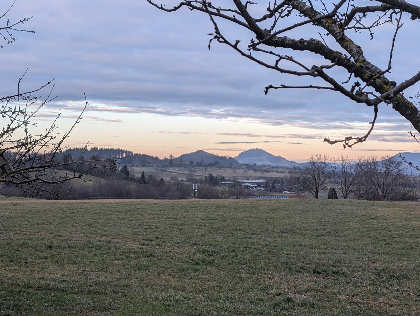 Fog in the Echaz and Neckar river valleys. And here on our meadow, the sun is rising. Wonderful moments. We had a relaxing night in the office, and the sunset was impressive once again. We're more of a summer Rudel, but right now it's really beautiful.