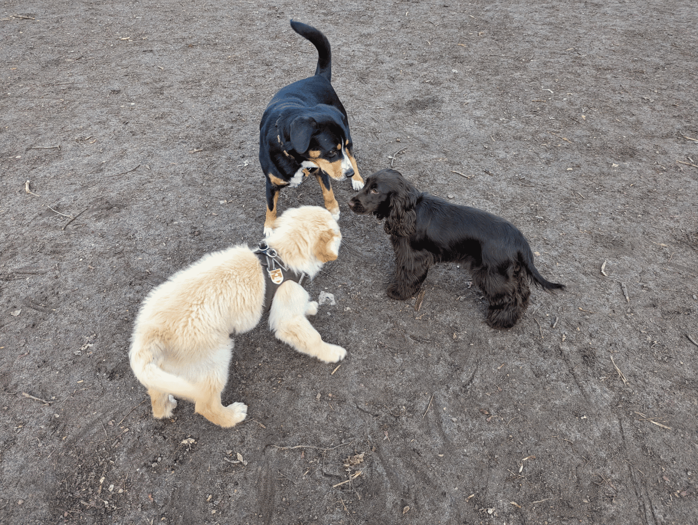 Die 3-Welpen-Verschwörung konspiriert. Bestimmt schließen sie sich gerade zusammen und fordern gleich mehr Leckerlis! :D
