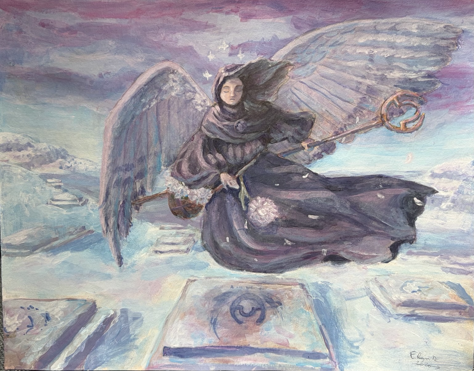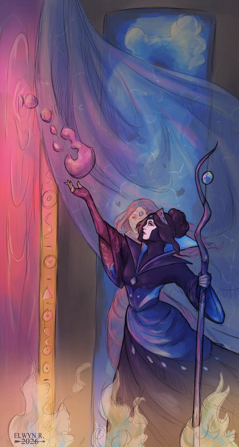Moi c'est Elwyn, illustratrice française aimant créer autour des mondes de l'imaginaire. Je puise mon inspiration dans mes (nombreuses) parties de jdr, les univers que j'écris pour ces jdrs, et dans la géologie.