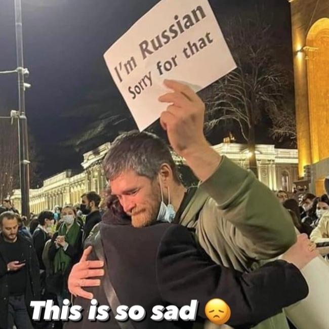 St petersburg April 2022, russischer Demonstrant mit Schild, i am russian sorry for that.
