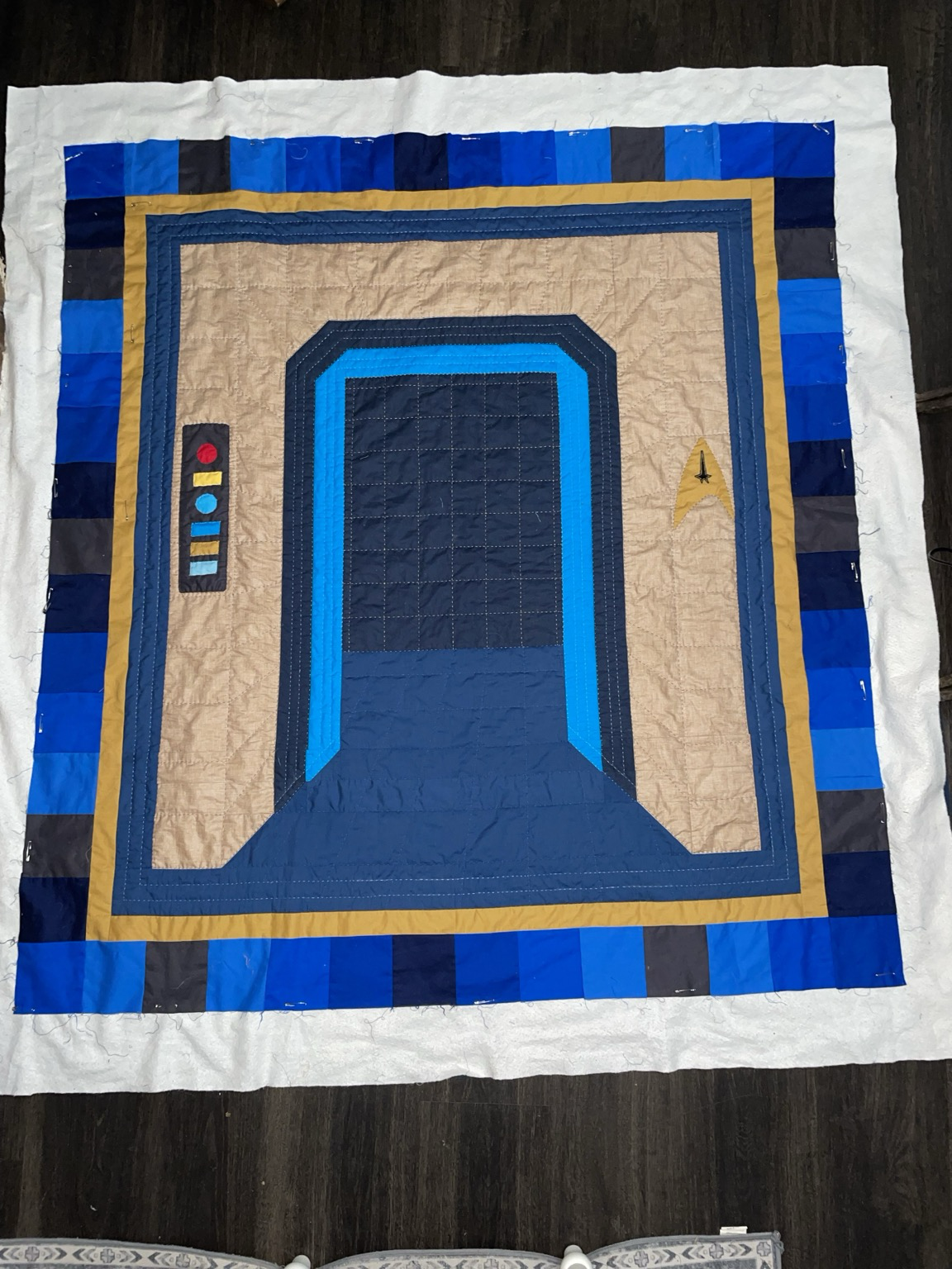 Making progress on the Star Trek Doorway quilt. #startrek #quilt #handquilting