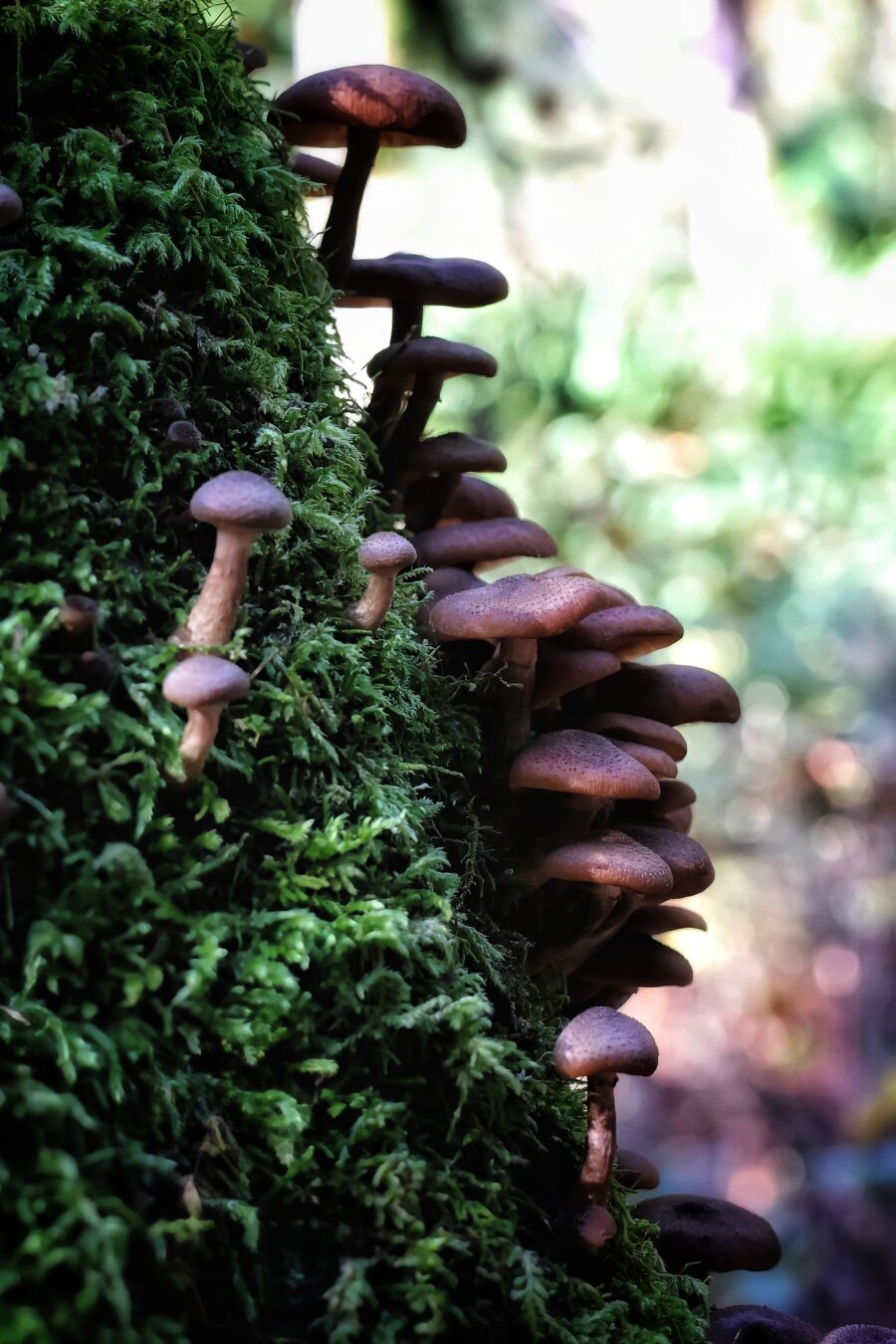 A herd of #mushrooms frolicking in the #moss for #FungiFriday