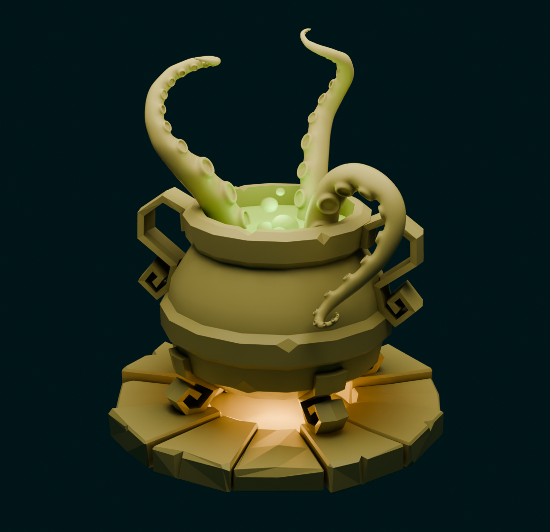 And here is yet another assignment in my #Blender course. A witches cauldron. This time I learned a bit on how to work properly with the subdivision modifier and modeling using bezier curves. I have used all of these tools before, but it's really nice to get a bit deeper understanding of it all.