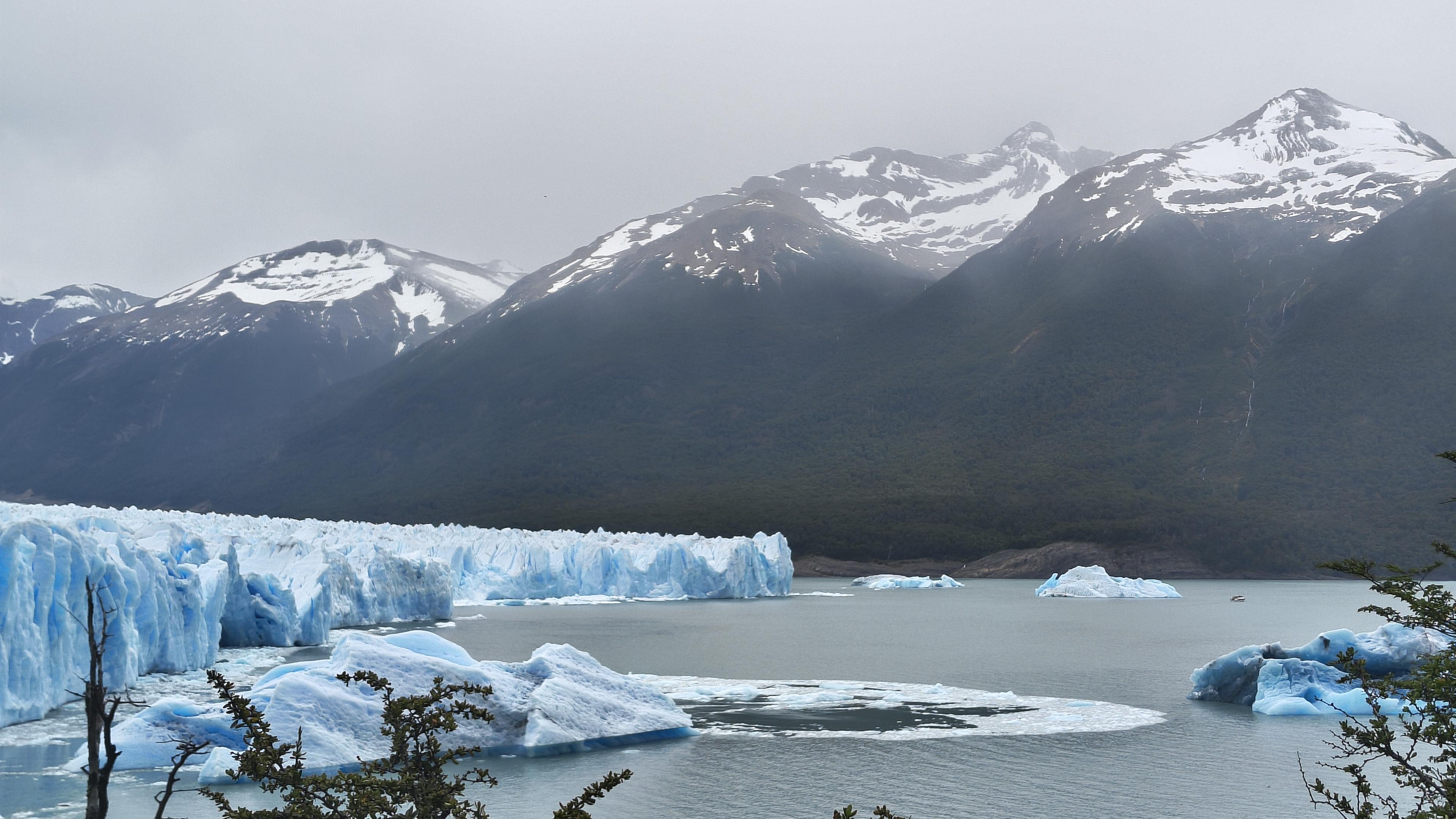 A view of the glacier from among trees.