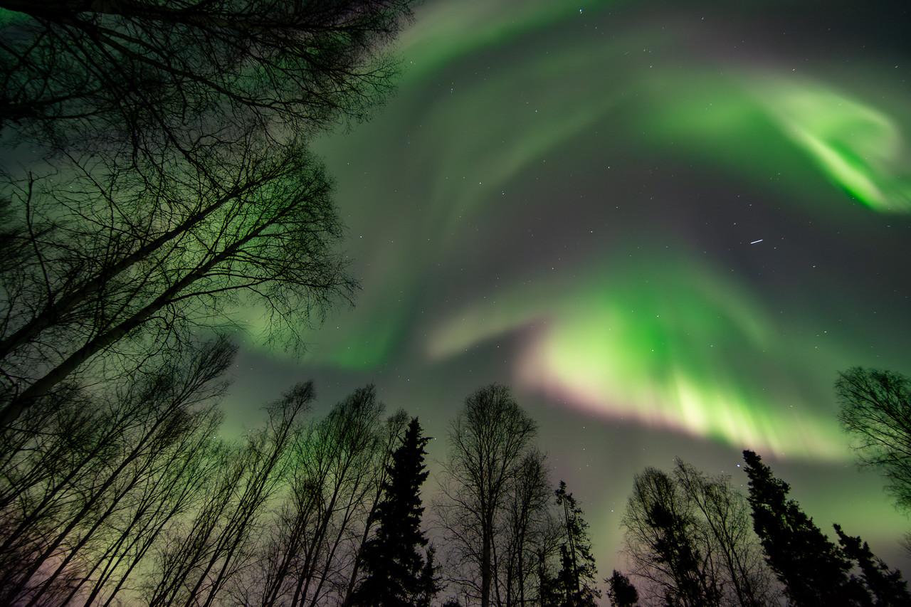 On very active evenings, the boreal forest feels small. The trees become silhouettes under something vast and constantly moving.
