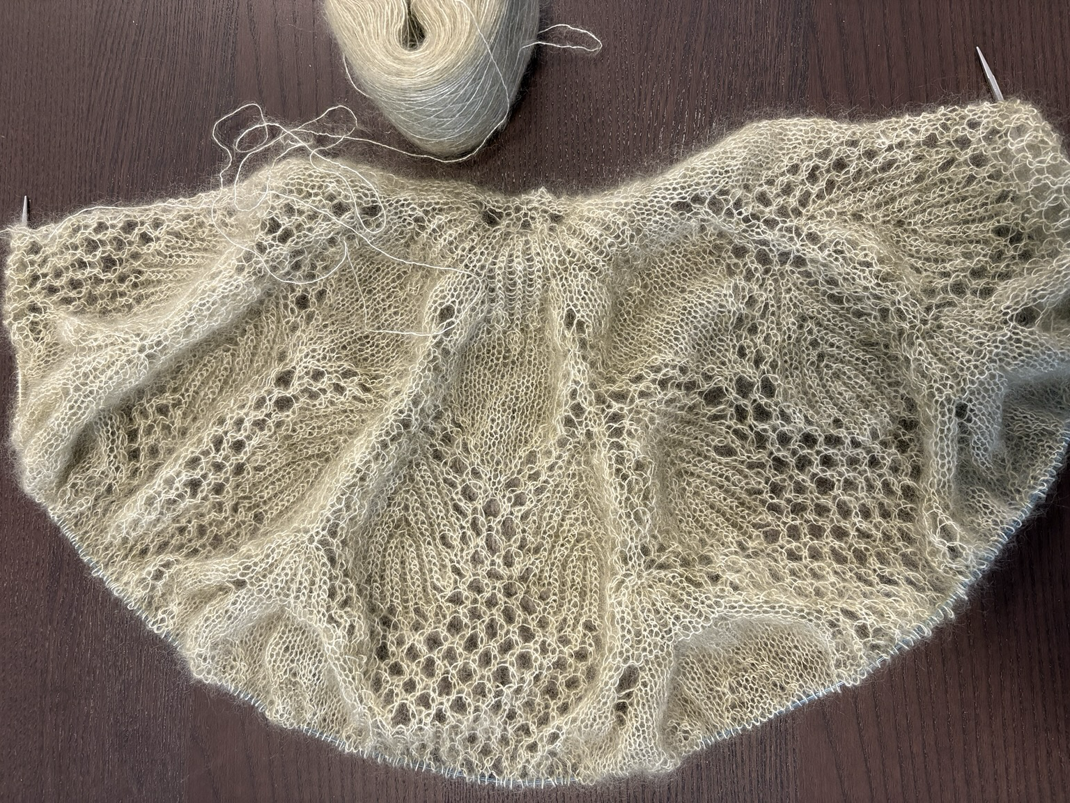 A slightly belated #knitting #WIPWednesday - I was traveling and had left the #lace project behind. (A: it's not a travel project, and B: I had introduced an error. NB: mohair is not fun to #tink.)