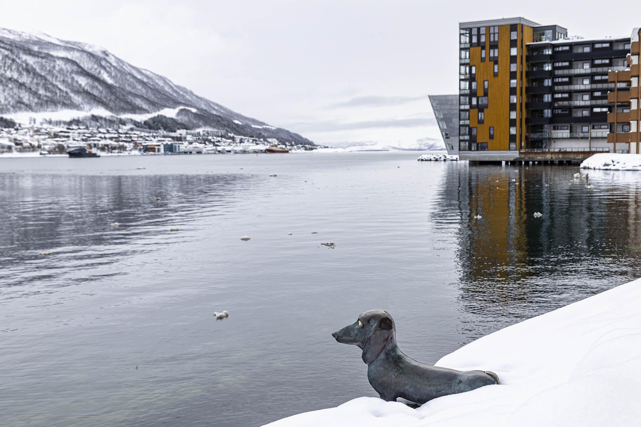 From #Tromsø last year, here's the dachshund dog statue by the water's edge in thick snow. We loved Tromsø so we're very pleased that we've booked another trip there for late next year.
