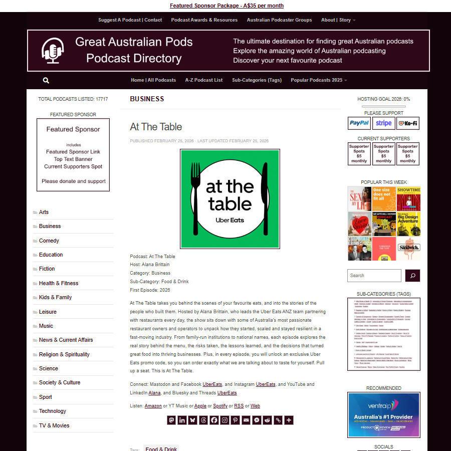 At The Table Screenshot of the podcast listing on the Great Australian Pods website