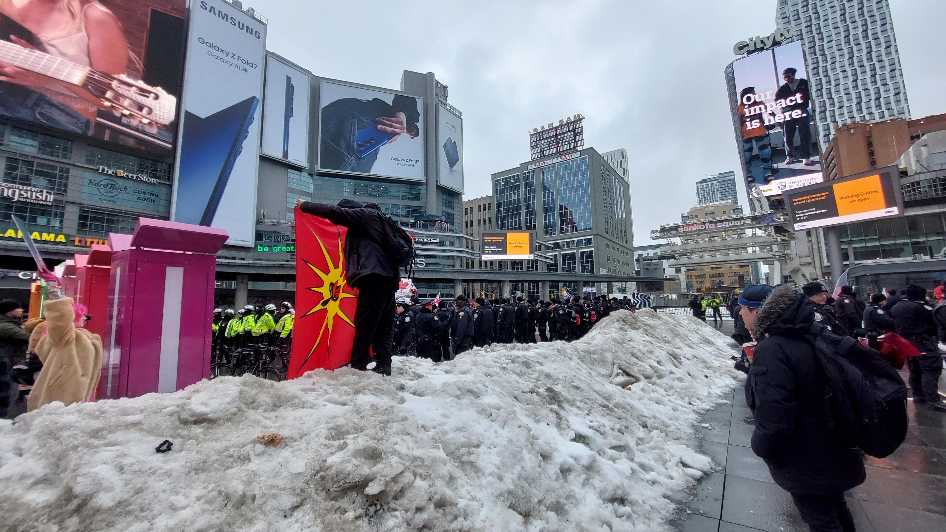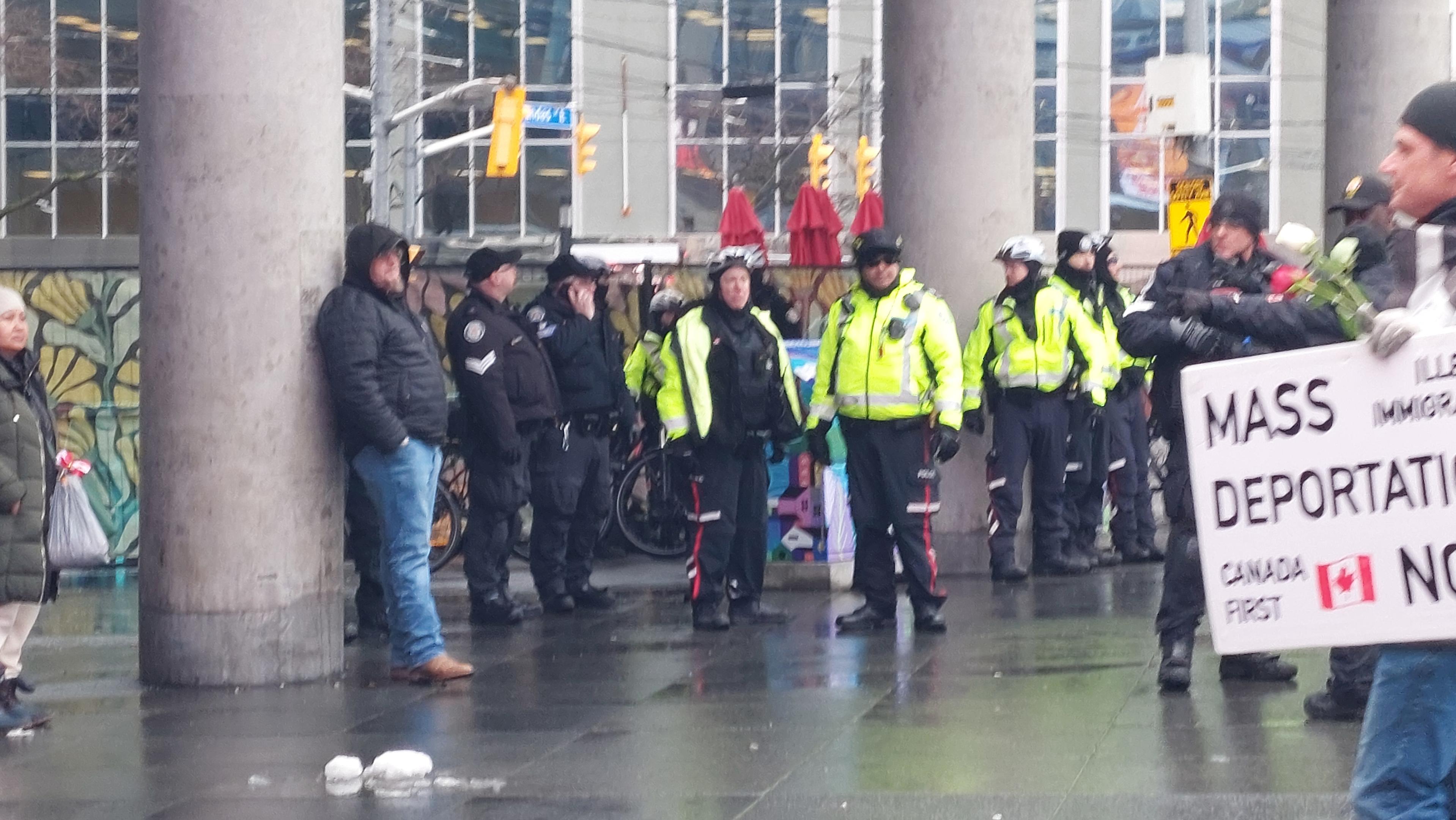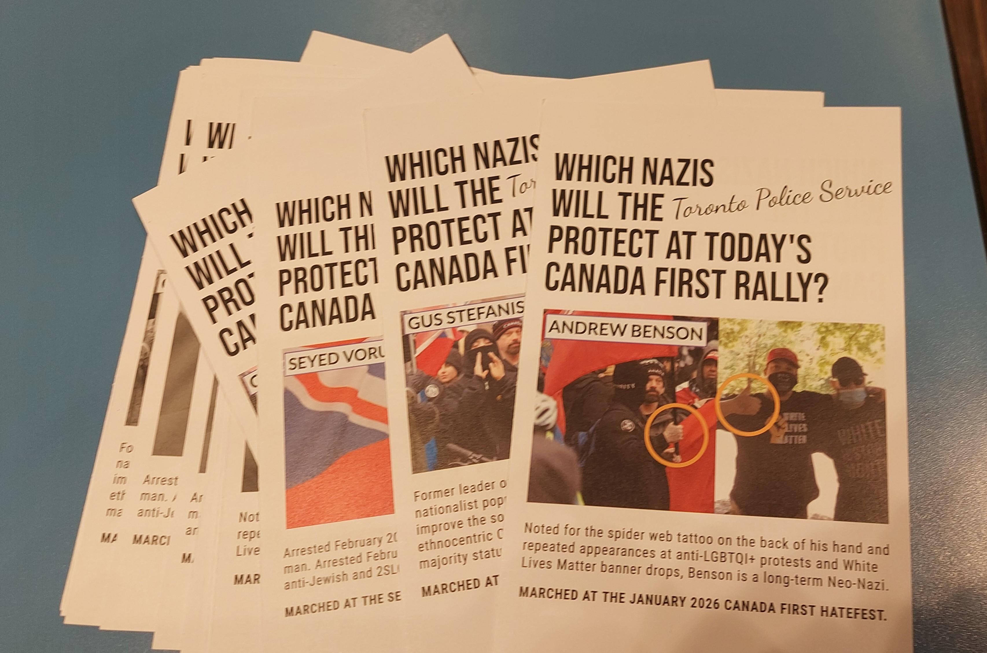 Cops were very upset to learn that people were being told that TPS was backing up Nazis, with one cop repeatedly telling people that they weren't obligated to take the flyers ๐