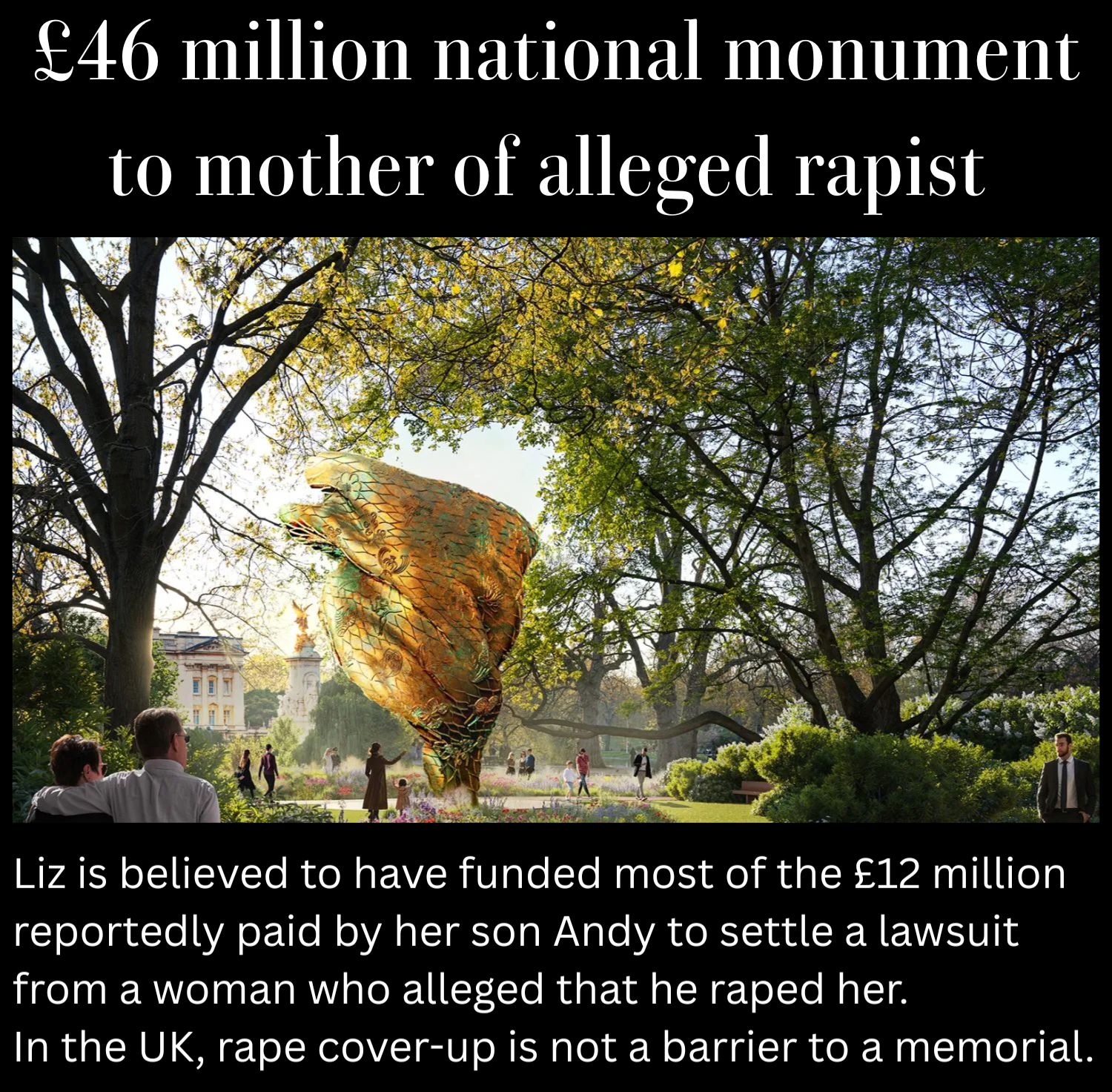 The UK has made detailed plans to spend £46 million on a national memorial to the mother of an alleged #rapist.