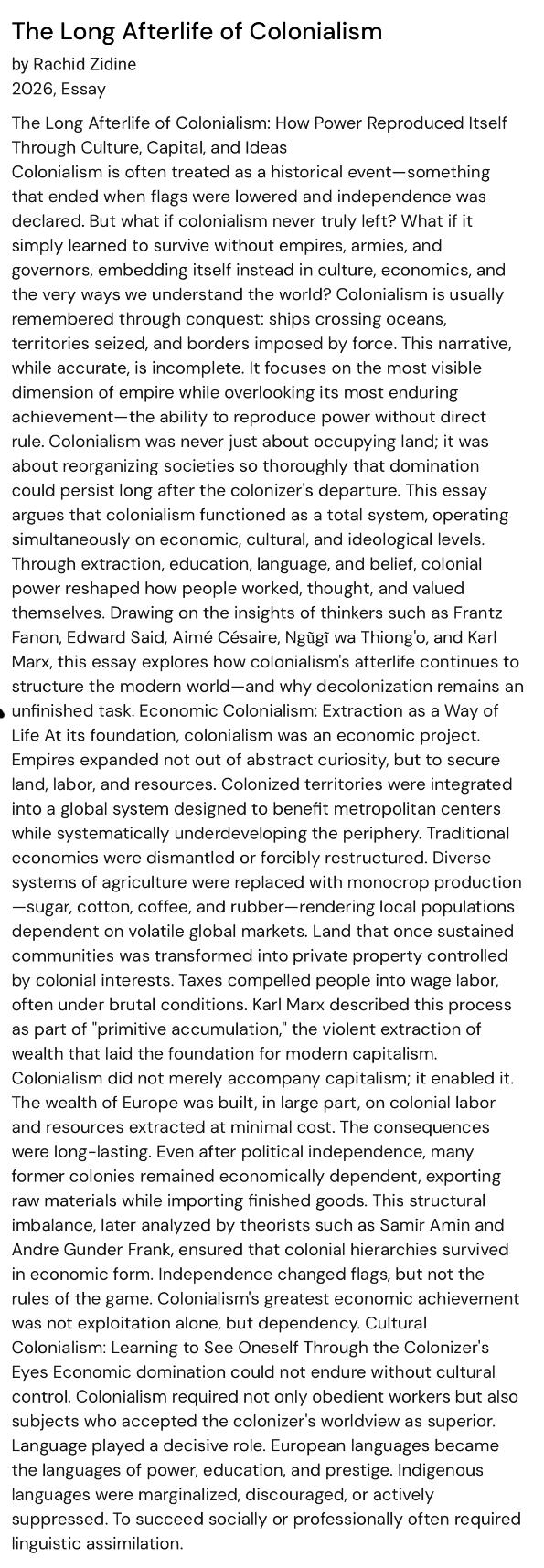 https://medium.com/@citizenrachid/the-long-afterlife-of-colonialism-b69b77d1e75b